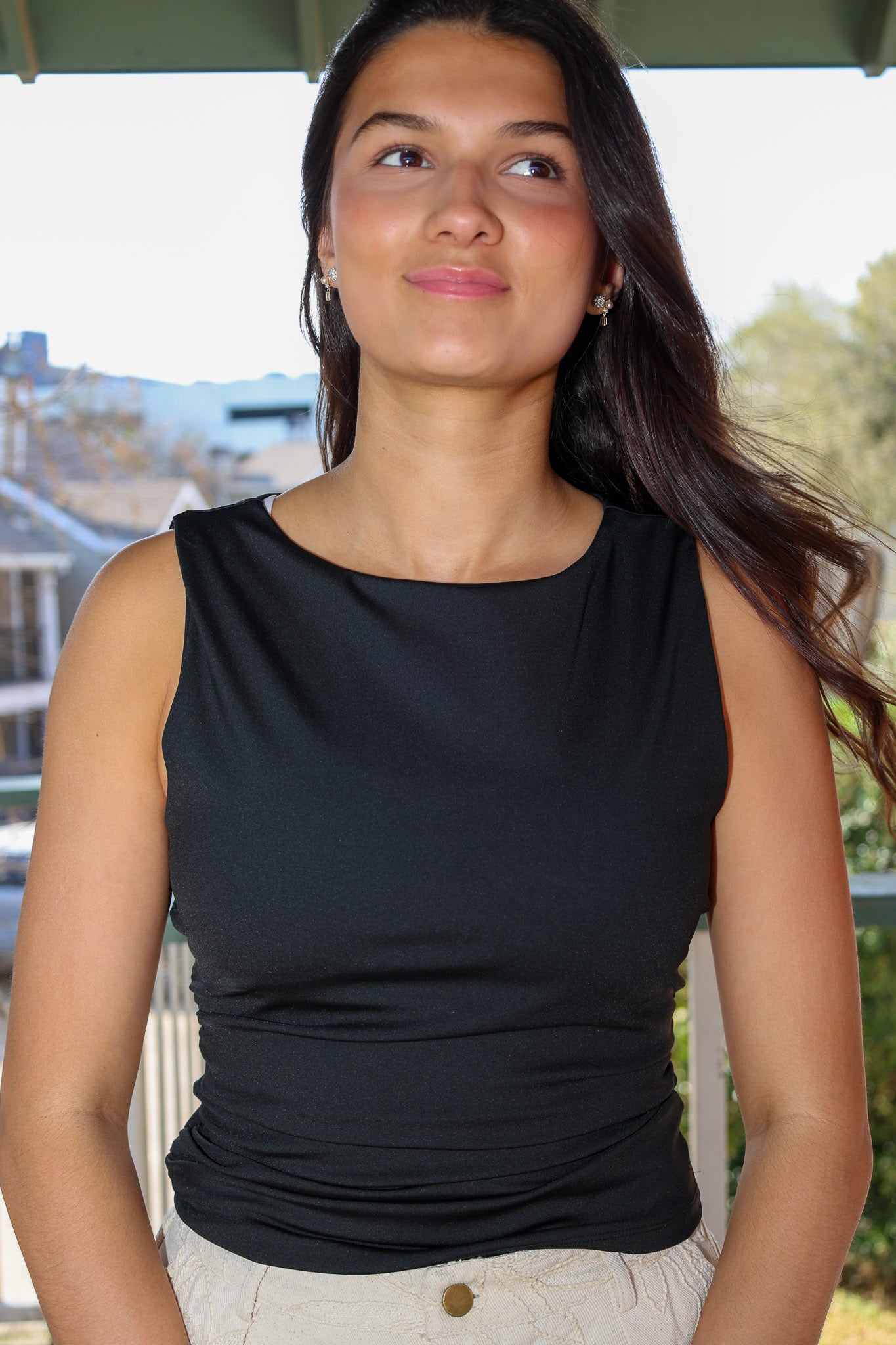 Effortlessly chic and flattering, the Adair Knit Top in Antique features a timeless boat neck and strategic ruching that sculpts your silhouette. This sleeveless essential pairs seamlessly with everything in your wardrobe.