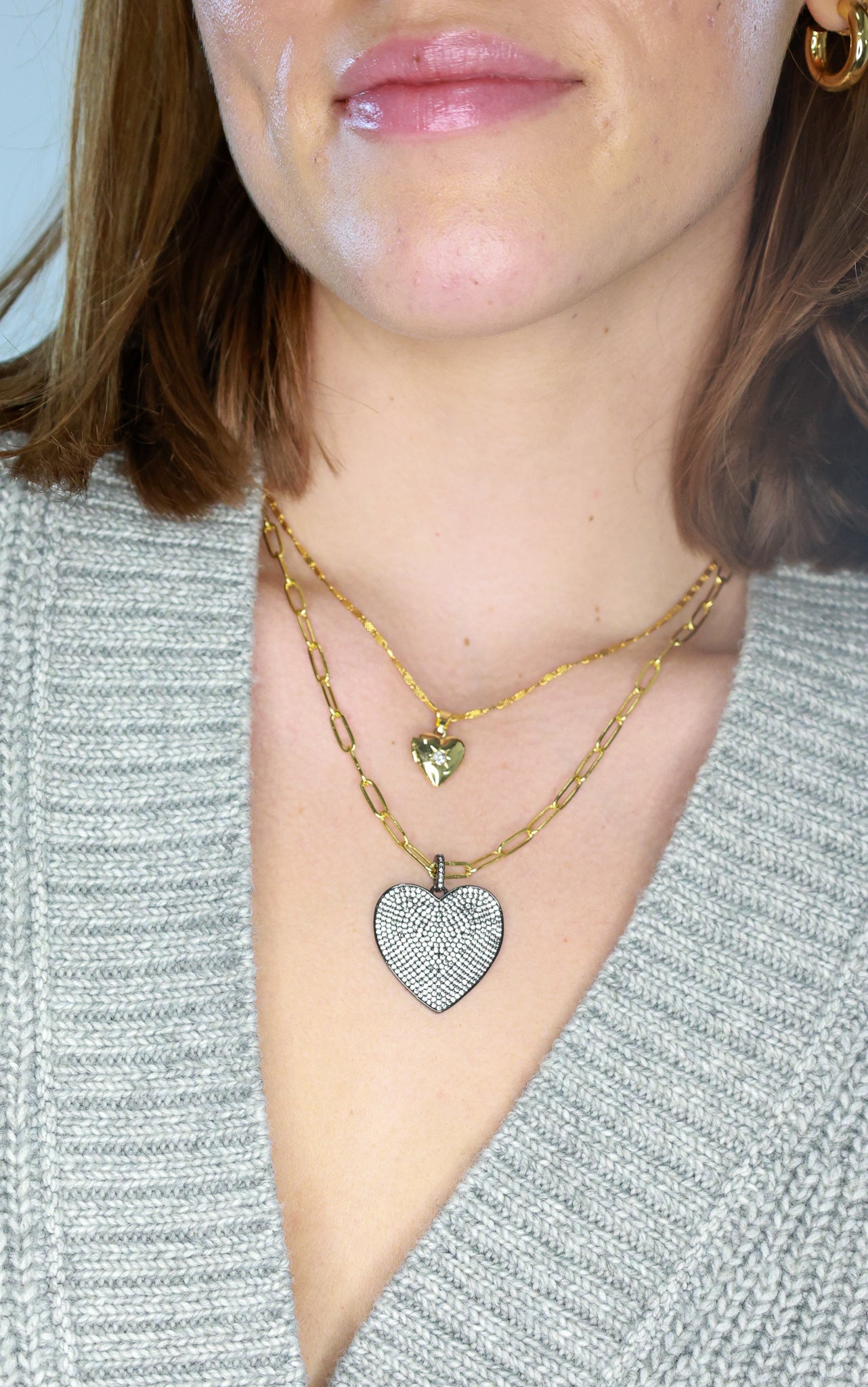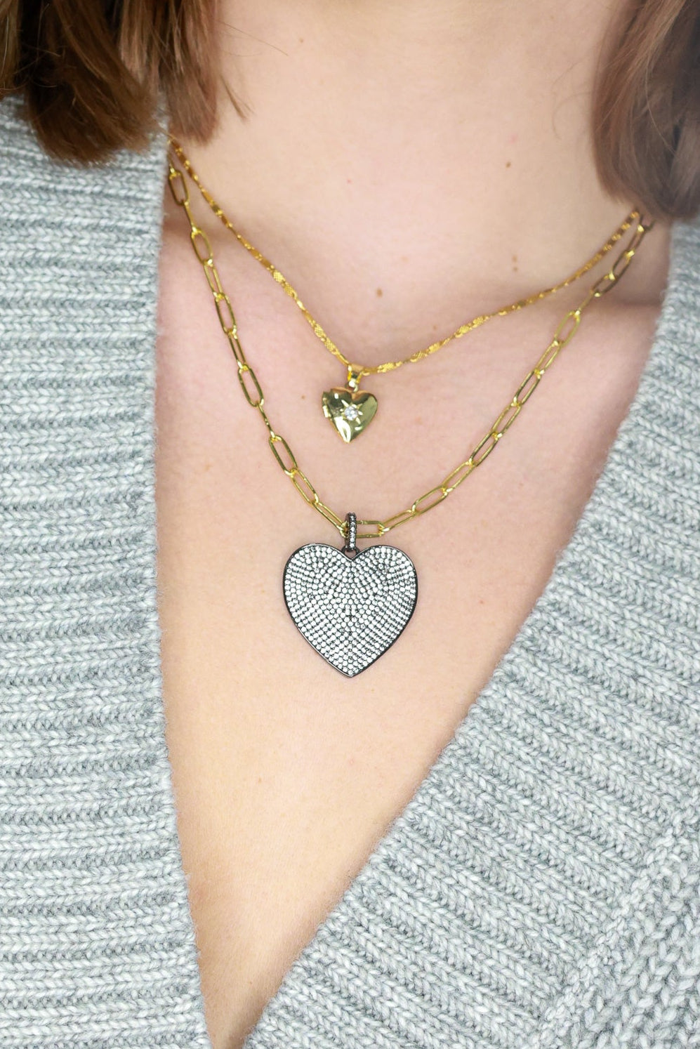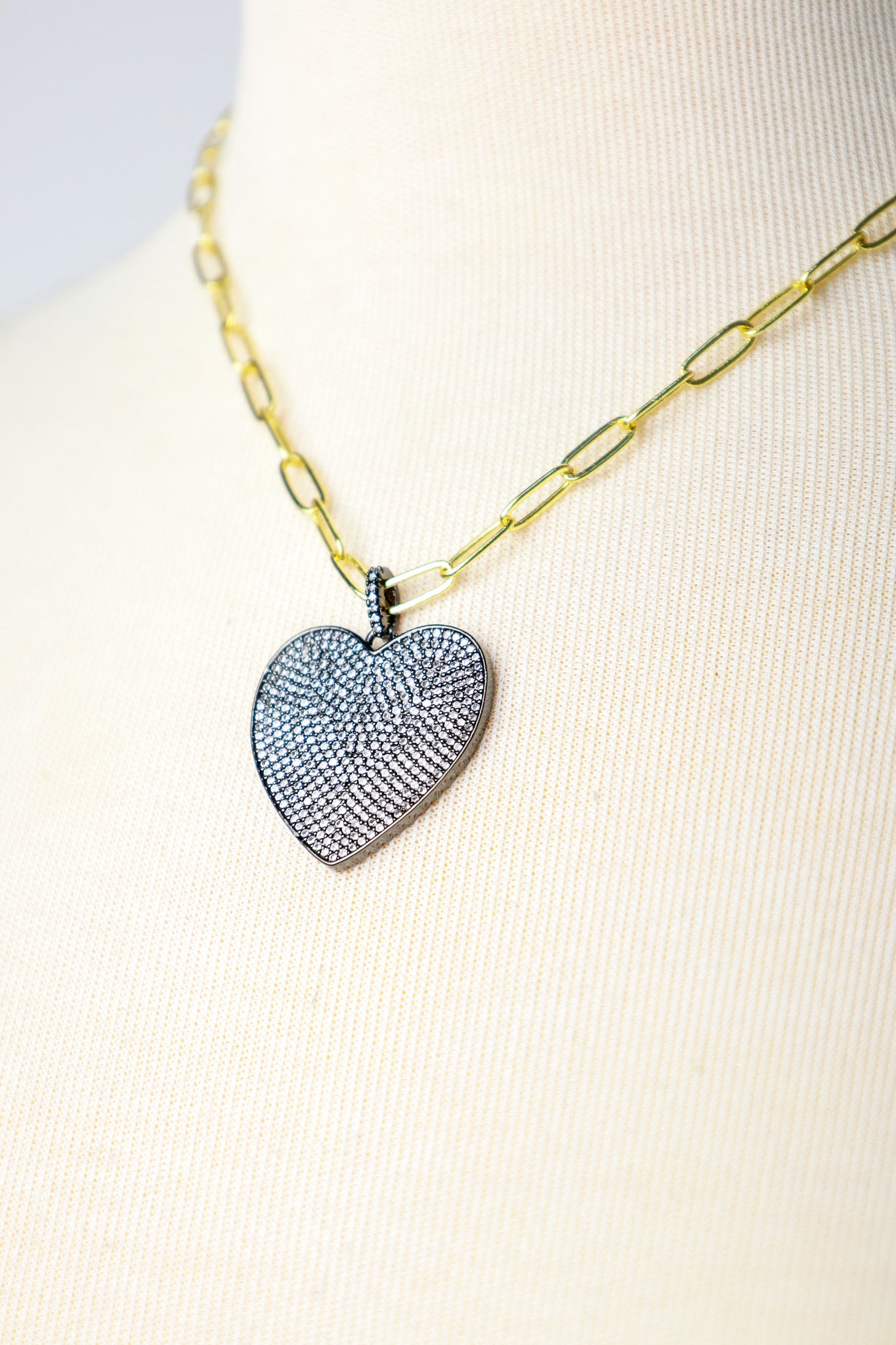 Add a touch of elegance to your outfit with All for Love. The gold color chain combined with the black and silver oversized heart pendant creates a unique and eye-catching design. Plus, the adjustable length allows for a perfect fit every time.