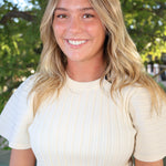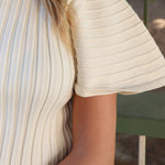 The Allie Sweater is a cozy must-have with a ribbed texture, a classic round neck, and wide short sleeves that give it a cool, relaxed vibe. It’s perfect for layering or wearing solo when you want to keep things comfy but stylish.