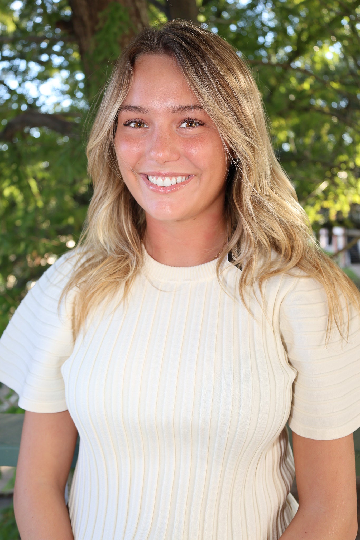 - Riley is 5'7" and wearing a size Small