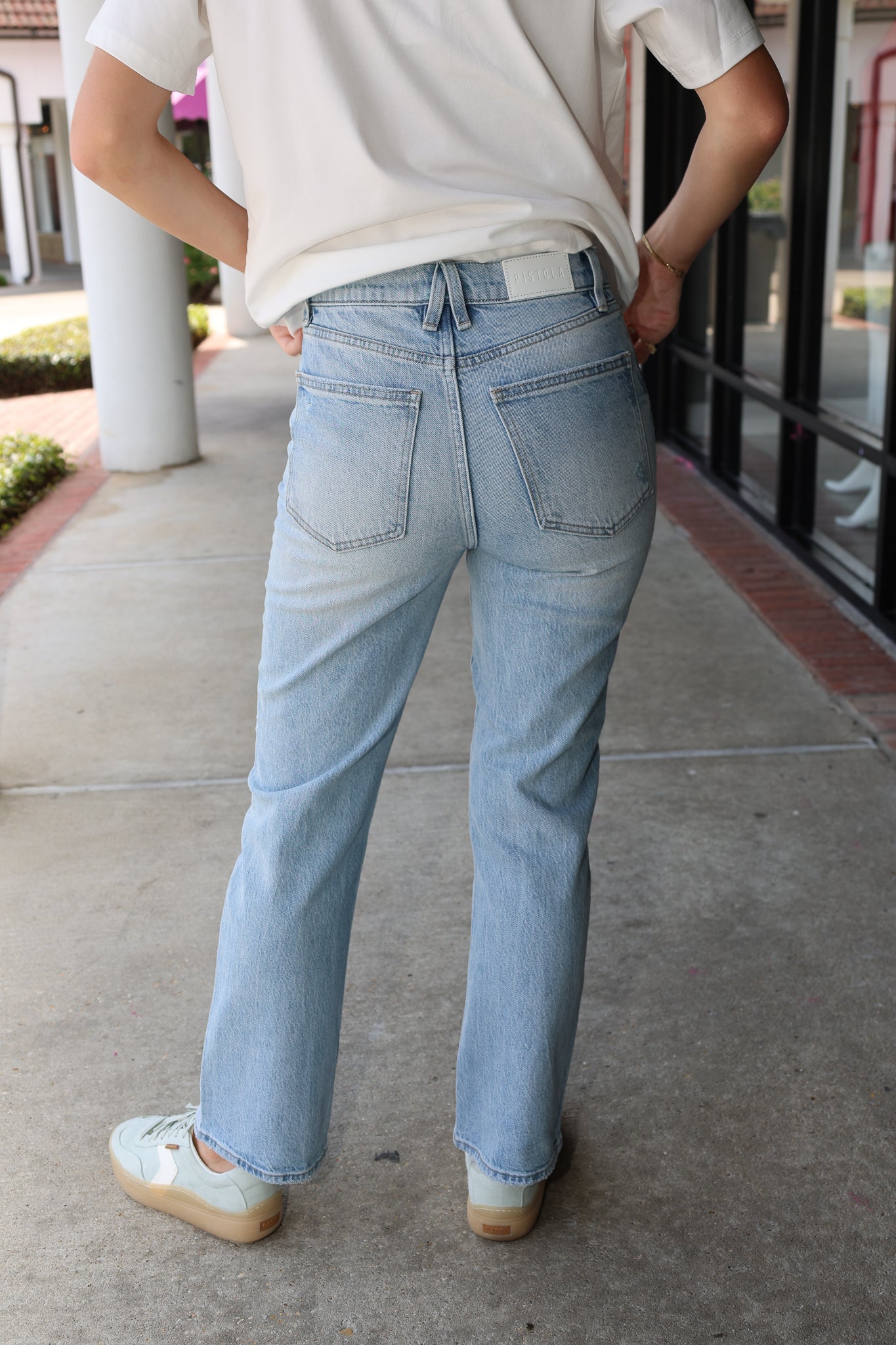 Step up your denim game with our Ally High Rise Jeans. These lighty distressed straight leg jeans provide the perfect amount of edge and comfort. Elevate your style with a higher rise for a flattering fit. All eyes will be on you.