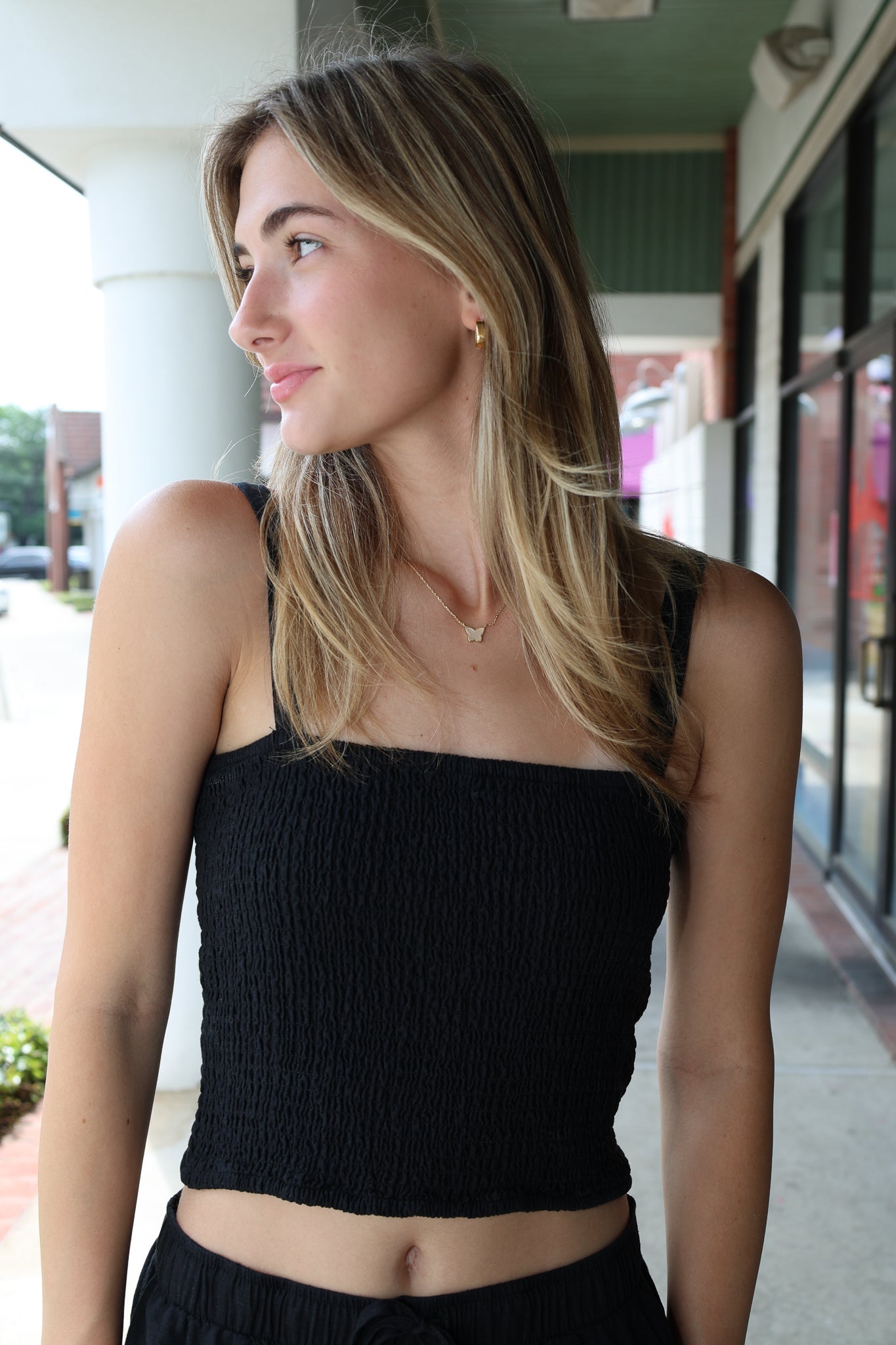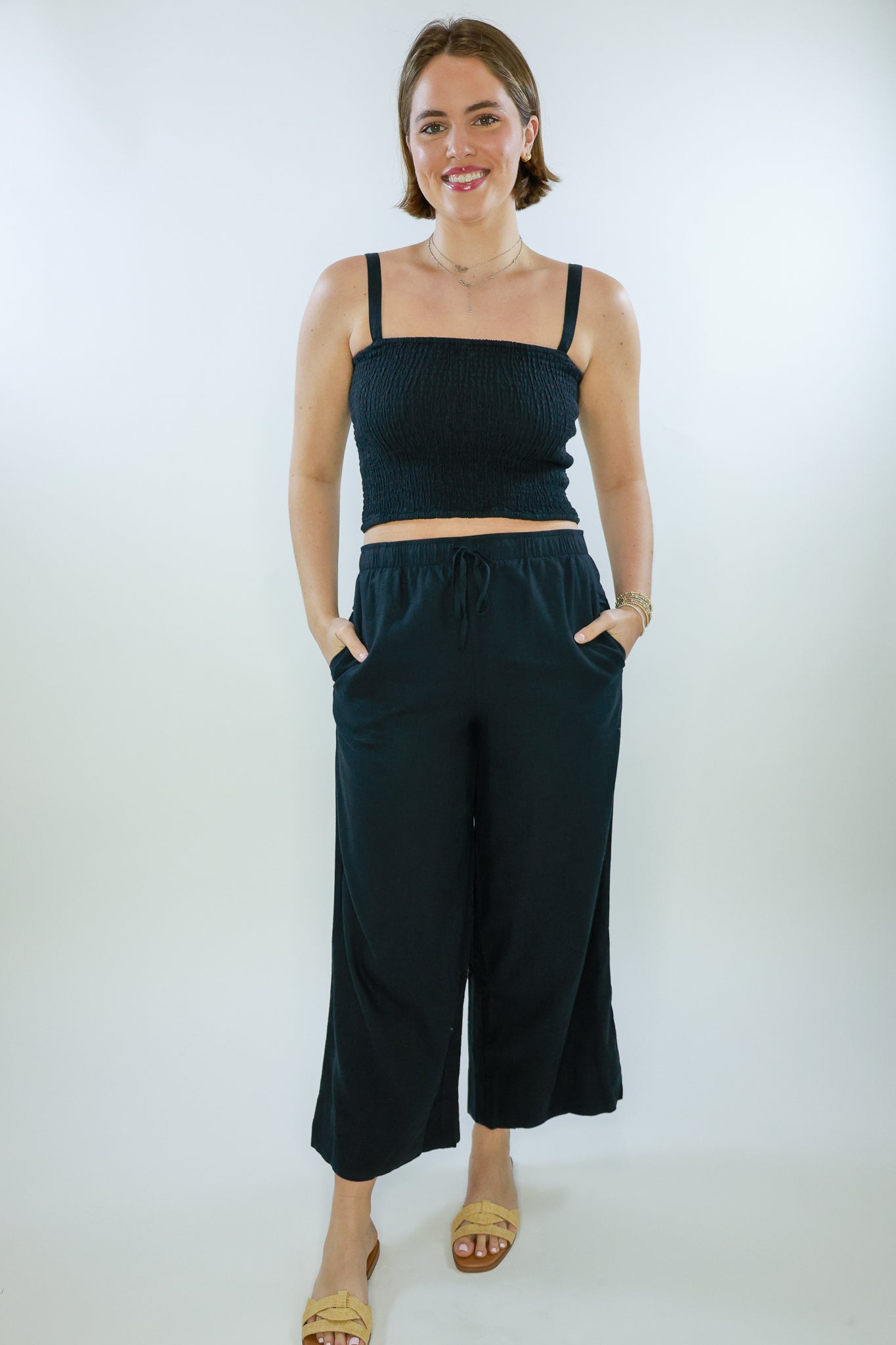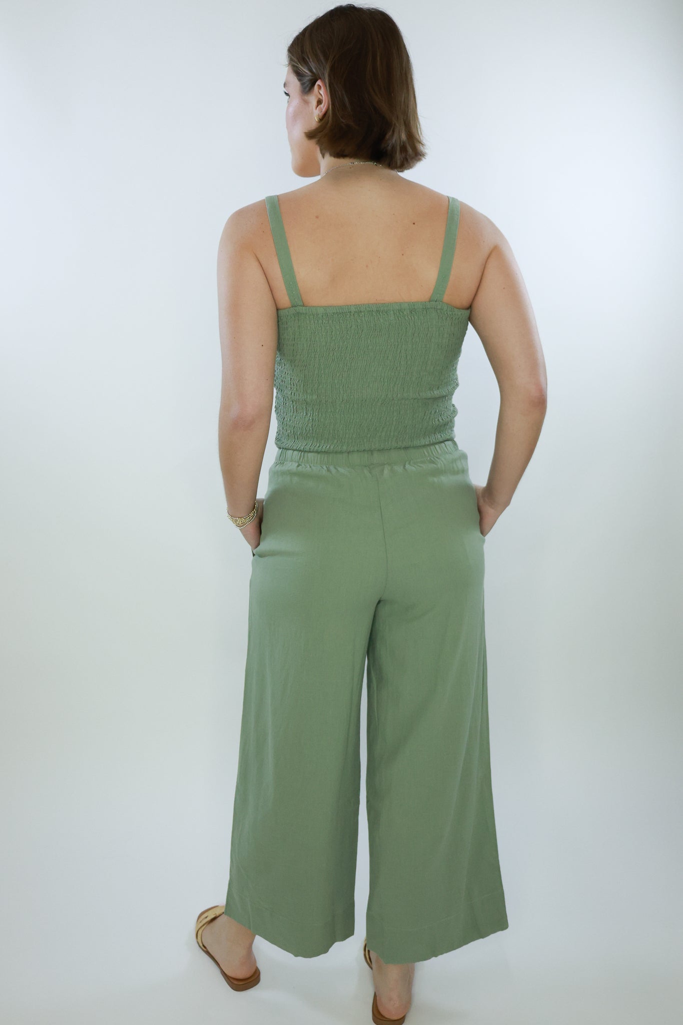 Elevate your summer style with our Amelie Linen Top. The cropped smocked sleeves add a touch of flair to this versatile sleeveless top. For a complete look, pair it with our Easton Linen Pants. Made from high-quality linen, this top is perfect for any sunny day.