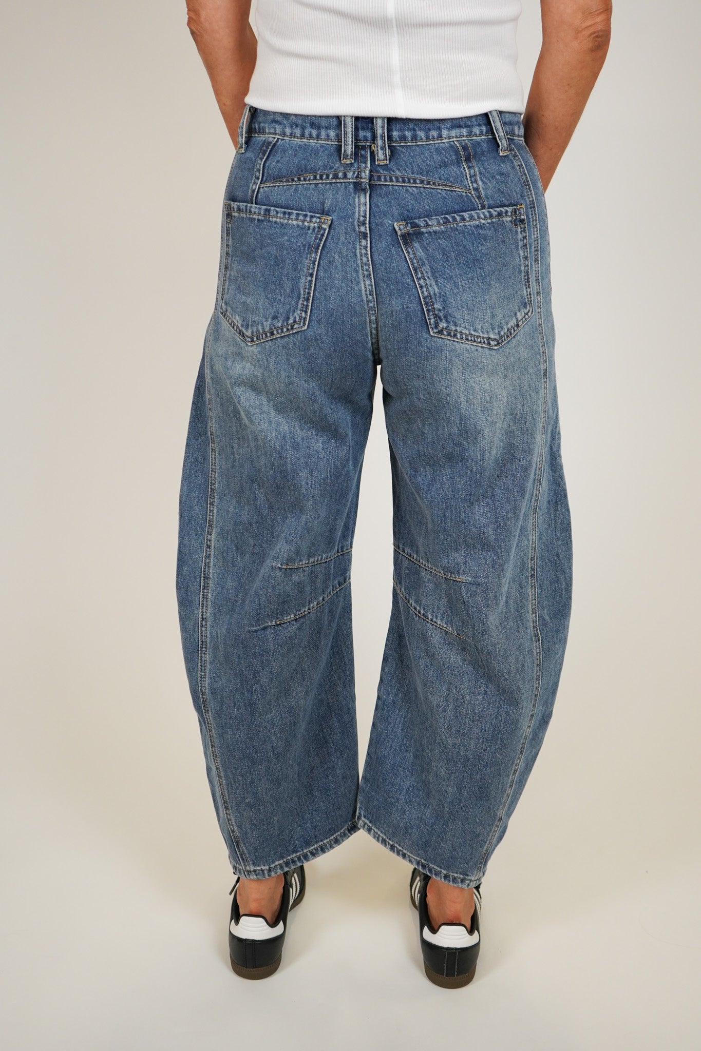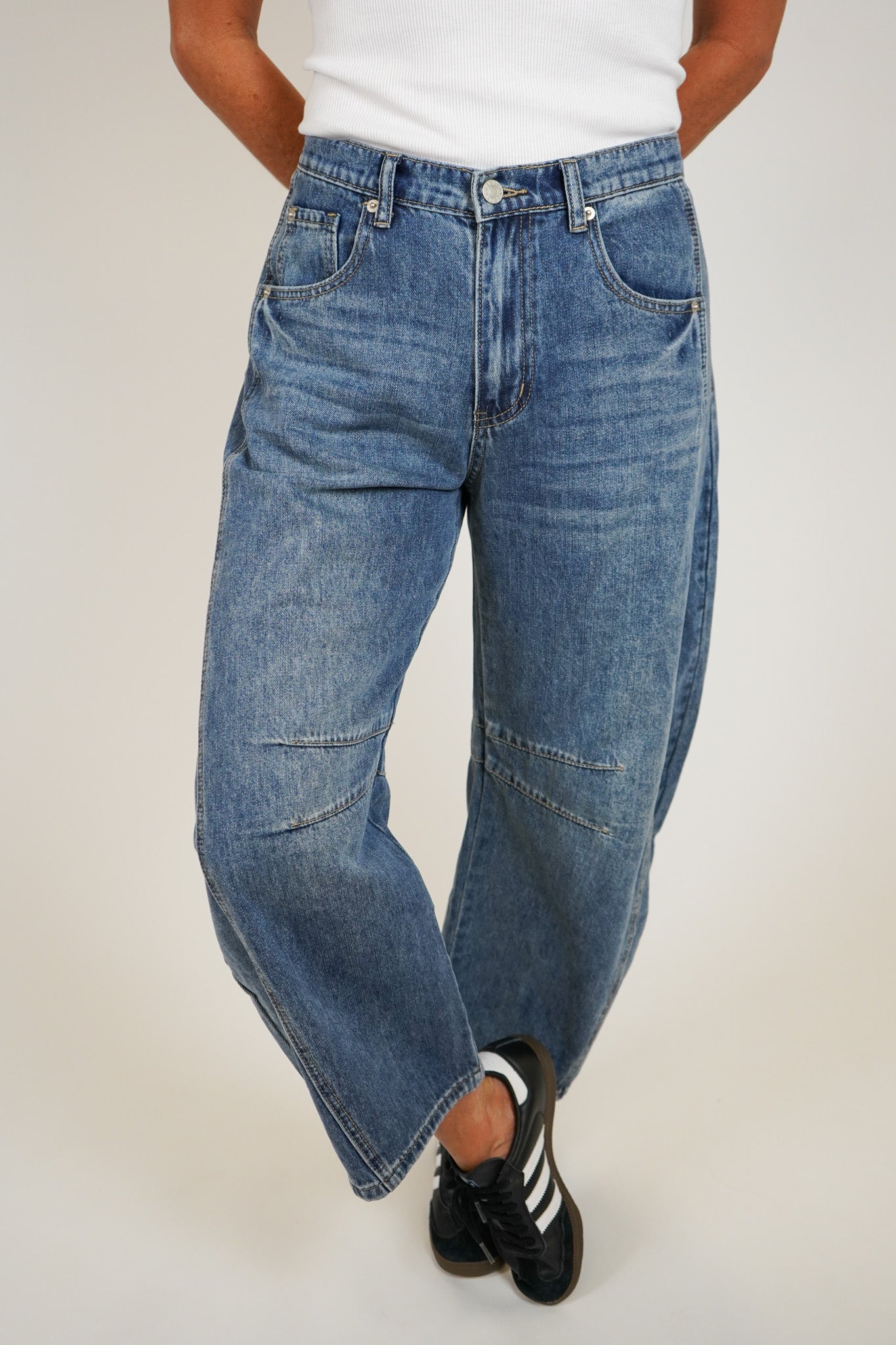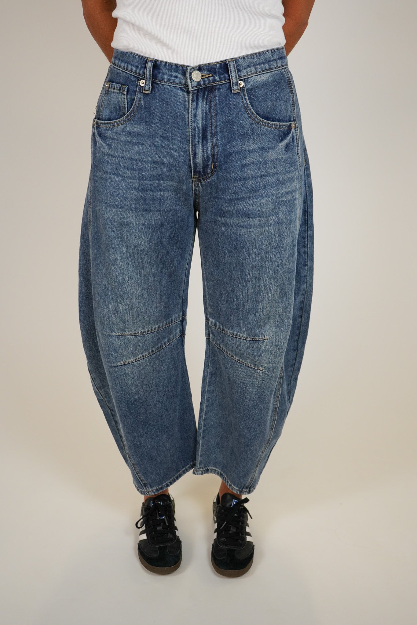Elevate your fashion game with Angie Barrel Jeans. These trendy barrel jeans are a must-have addition to your wardrobe. Made with high-quality materials and a flattering fit, these jeans will make you stand out in any crowd. Upgrade your style today.