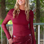 Get ready to stand out in the Aria Top, a sheer burgundy long sleeve crossover top that’s equal parts edgy and cute. Its soft, see-through fabric lets you layer up or rock it solo for those chill vibes. Perfect for days you want to keep it casual but still turn heads with that cool, effortless style.