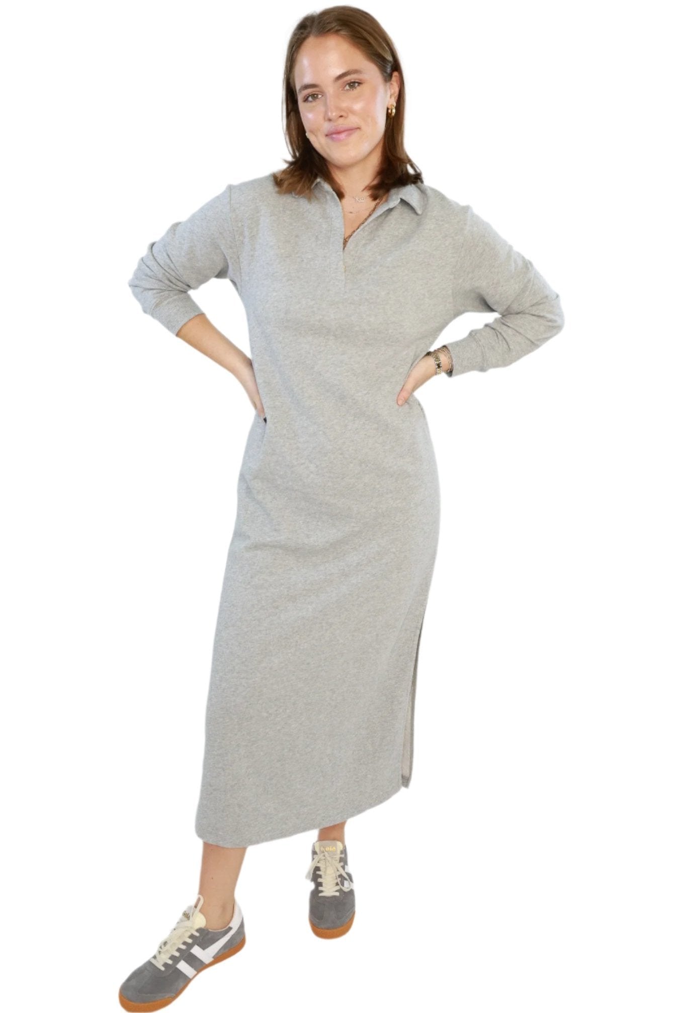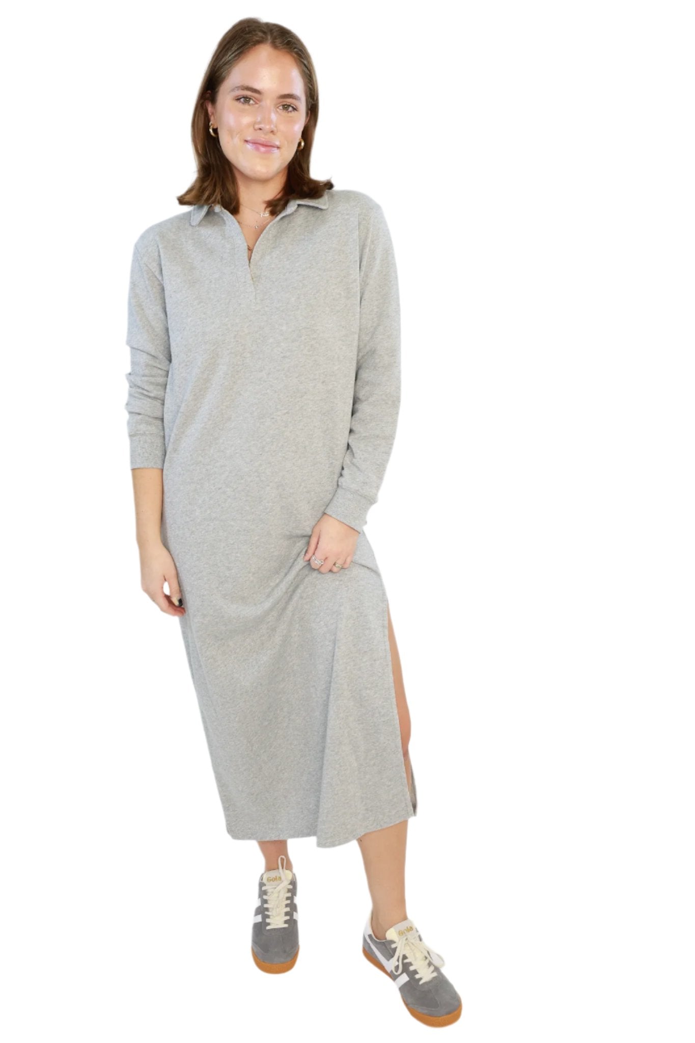 Enhance your wardrobe with the versatile and stylish Aspen Maxi Dress. This midi/maxi sweatshirt dress is a must-have for any fashion-forward individual. The dress features a comfortable v-neck design that ensures both style and comfort. Perfect for any casual occasion, this dress will become your go-to piece for any season.