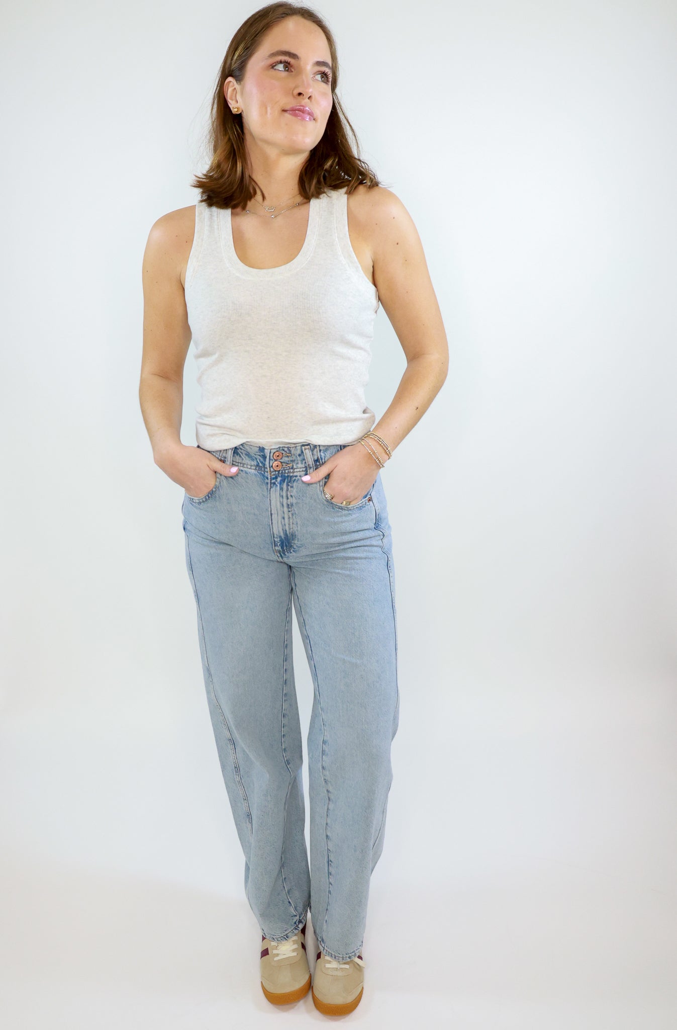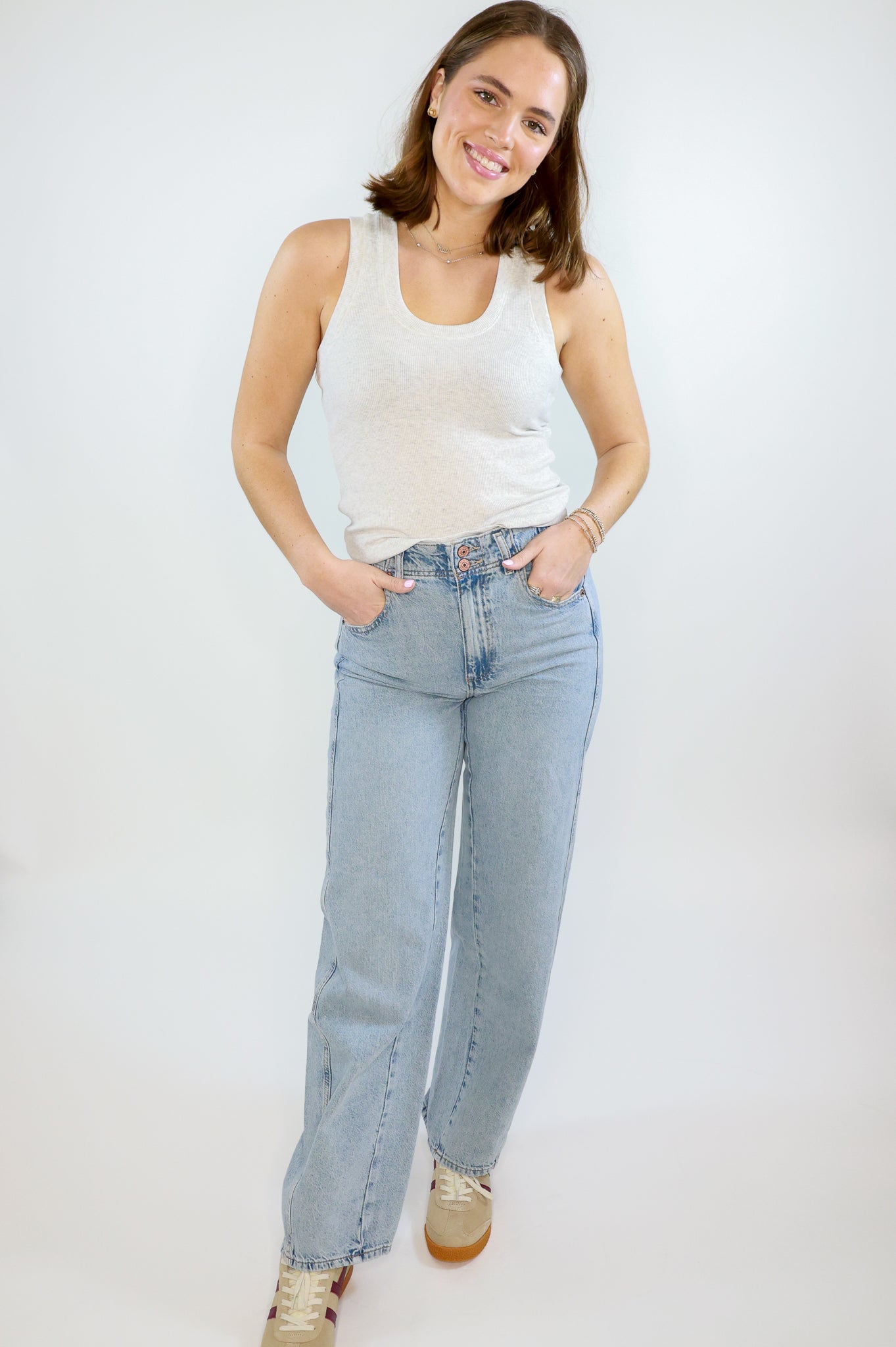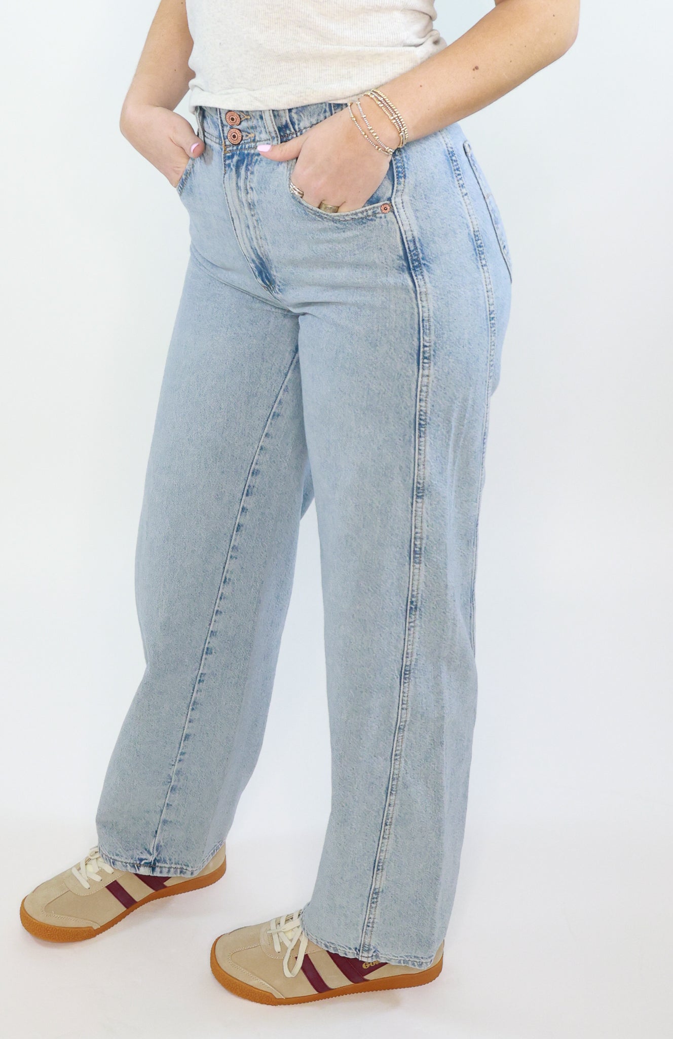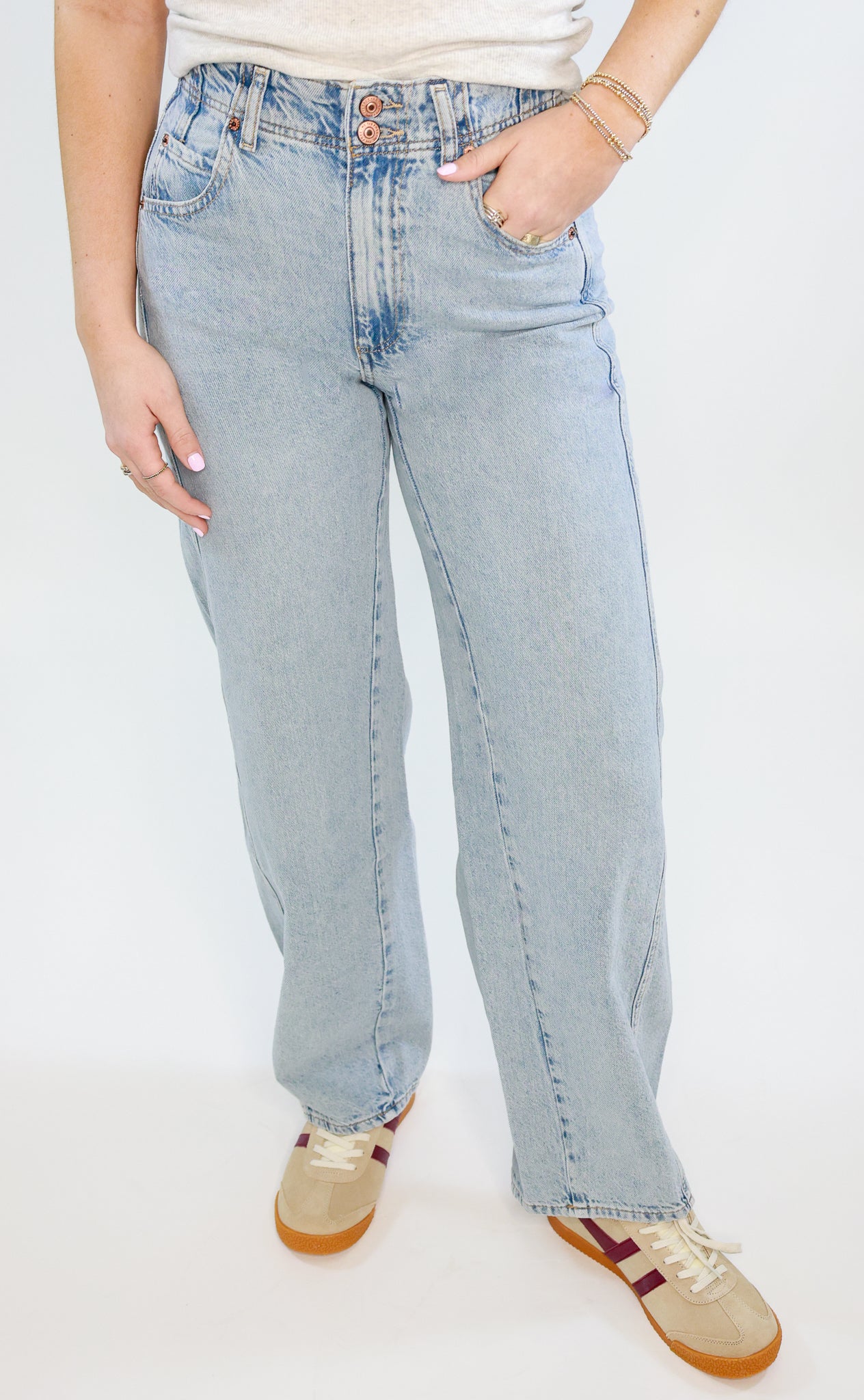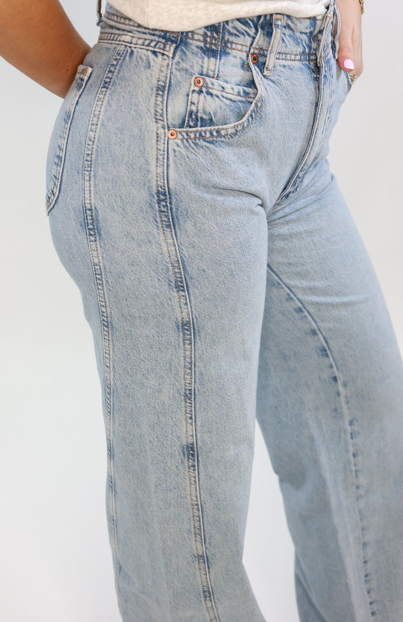 Introducing the Aster Jean by Free People, featuring a double button closure and relaxed straight fit. Crafted with comfort and style in mind, these jeans are perfect for effortless casual wear. Made with a high-quality denim blend, experience the perfect balance of comfort and fashion with the Aster Jean.