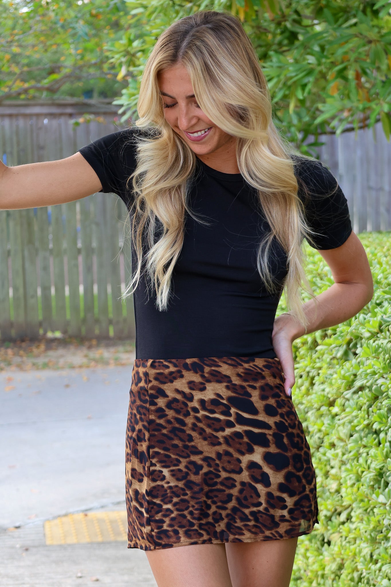 The Avery Skirt brings fierce vibes with its leopard print and sheer overlay, but it’s fully lined so you can feel totally confident. The side zipper makes it easy to wear, making this skirt a wild but comfy addition to your wardrobe. Perfect for turning heads!