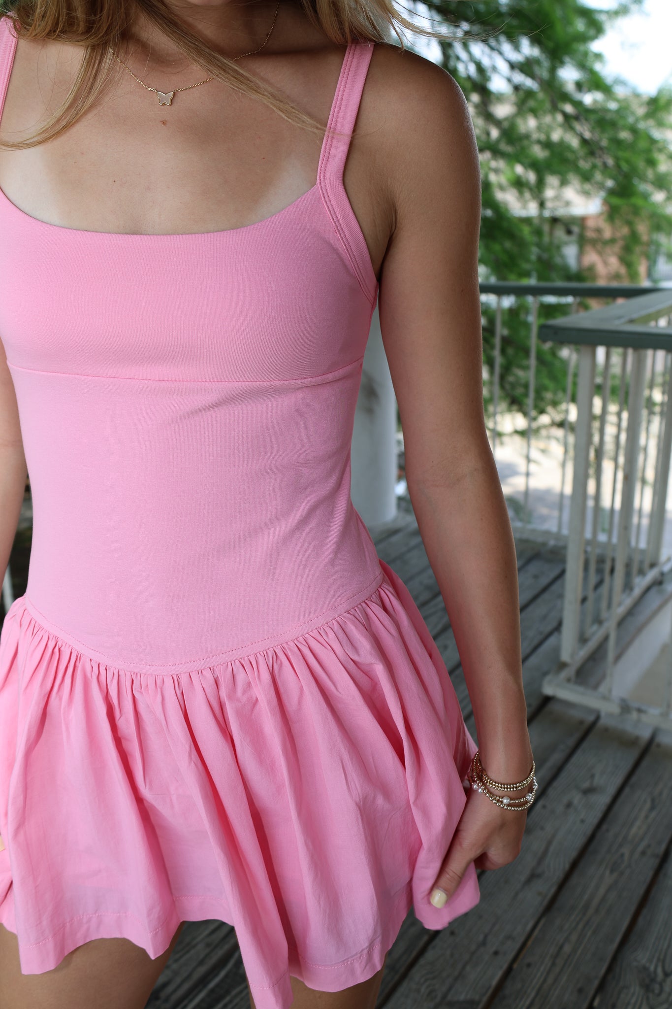 Get the best of both worlds with the Avery Skort Dress! This playful and practical dress features a mixed media tank top with a flattering a-line silhouette, perfect for any occasion. Built in boy shorts. Say goodbye to outfit changes and hello to a comfortable yet stylish look.