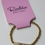 Add a touch of shine with Small Beaded Bracelet with heart slider! Gold finish bracelet with a stretchy band, it's effortlessly chic (and a little bit fancy). Perfect for stacking or wearing on its own. No need to worry about sizing - it stretches to fit comfortably. Go ahead, treat yourself (or a friend) to this charming accessory!
