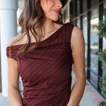 The Benedict Top brings effortless style with its asymmetrical cowl neckline that drapes just right. Sleeveless design keeps things cool, while classic stripes add visual interest. Perfect for layering or wearing solo, this versatile piece works for casual hangouts or dressed-up occasions. A wardrobe essential that feels fresh and modern.