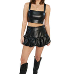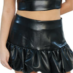 The Bonaire Skort by Amanda Uprichard is a versatile and stylish addition to any wardrobe. This black leather ruffle mini skirt pairs perfectly with the Agnes Top for a chic and coordinated look. Made from high-quality materials, it provides a comfortable and flattering fit. Elevate your fashion game with the Bonaire Skort.