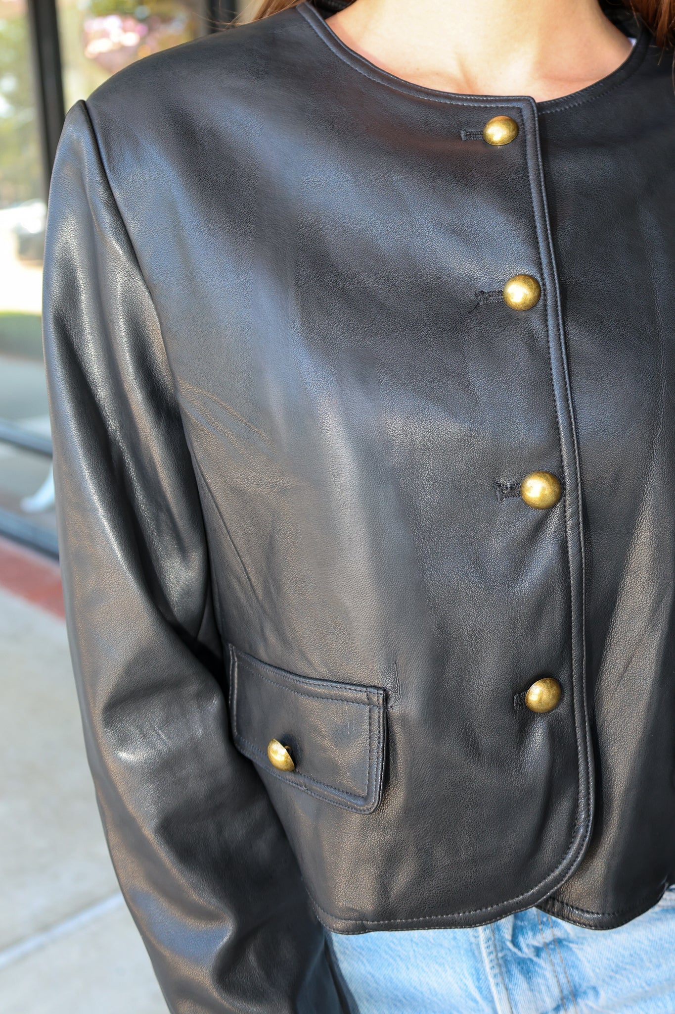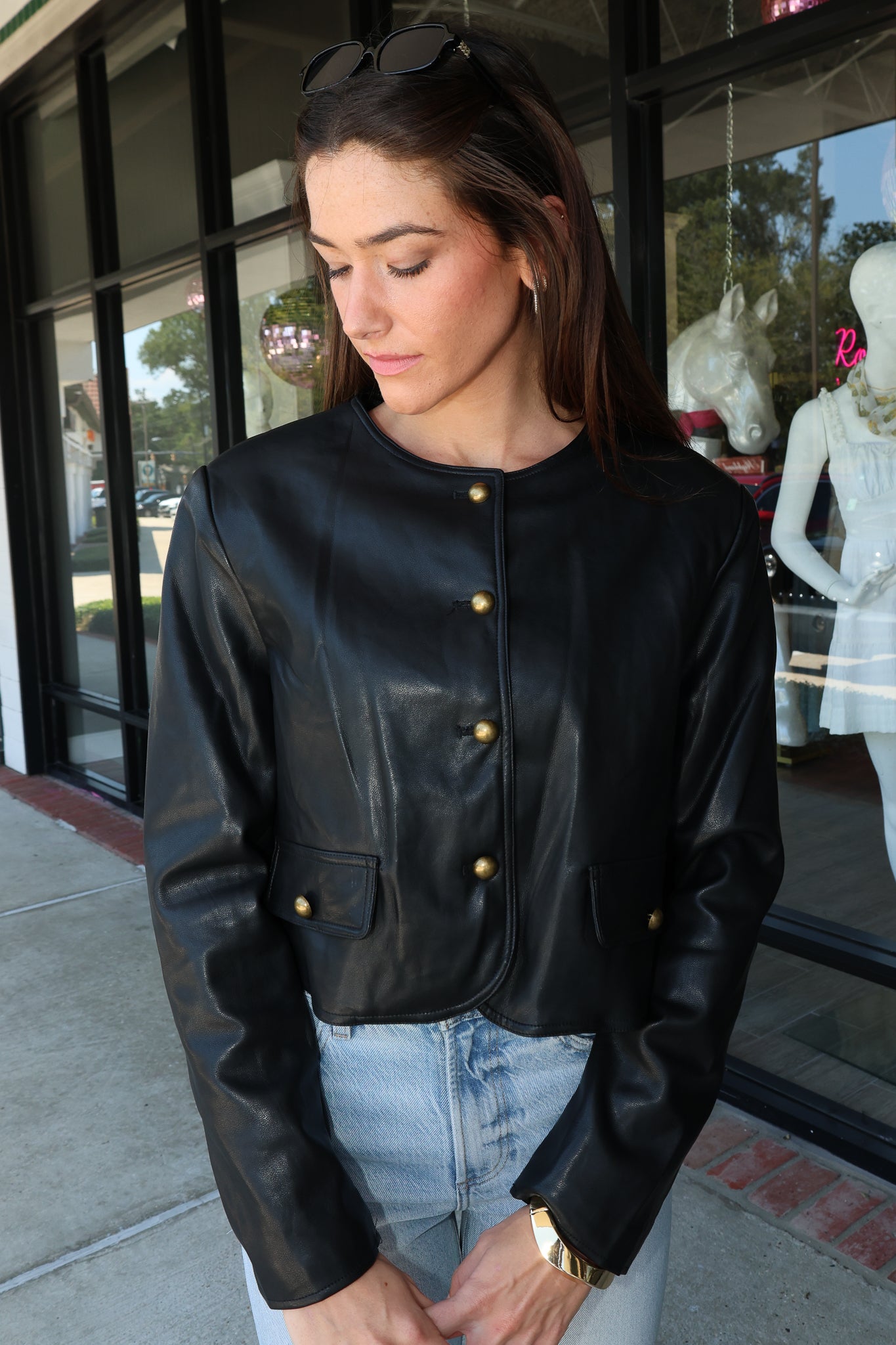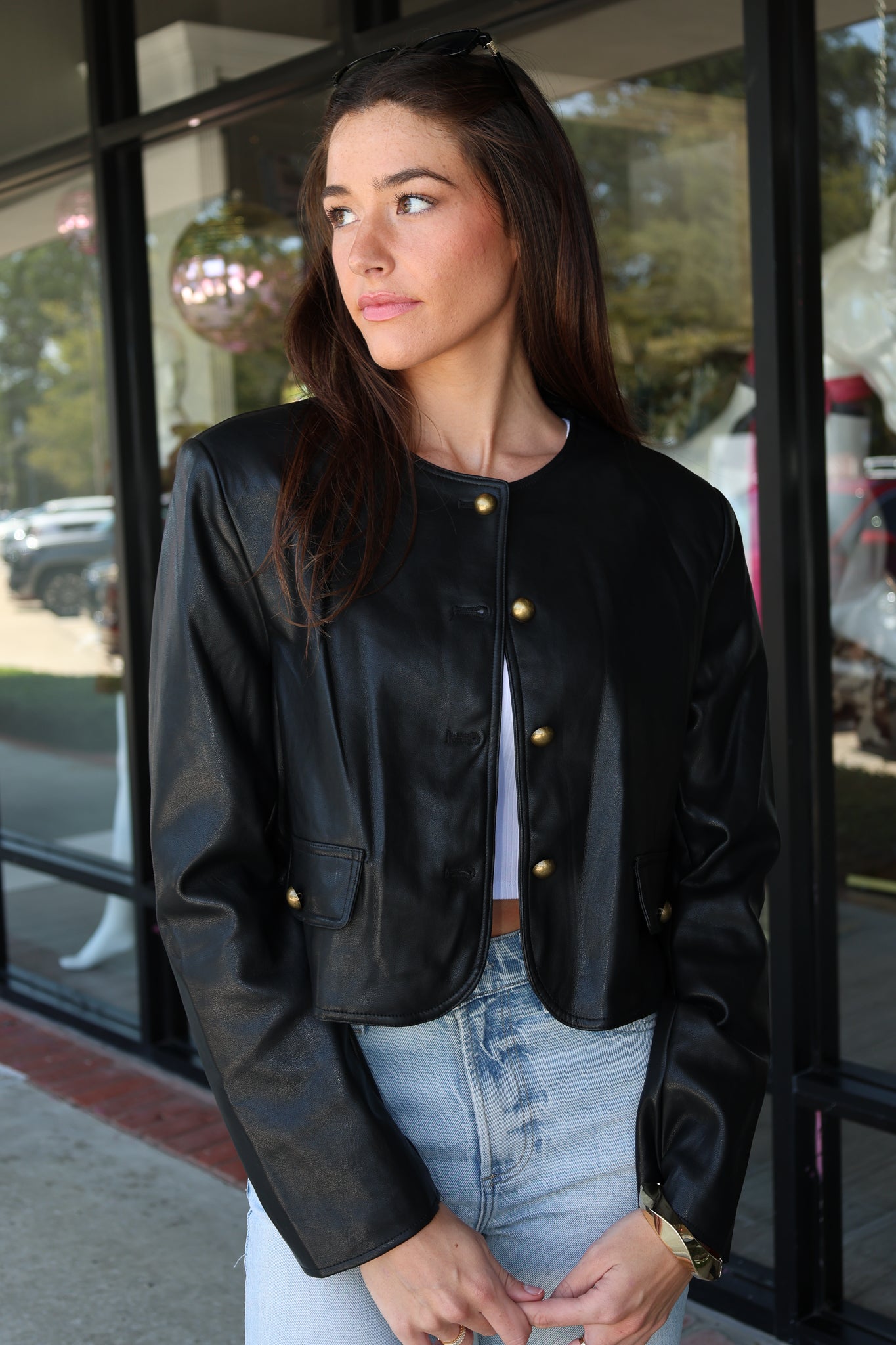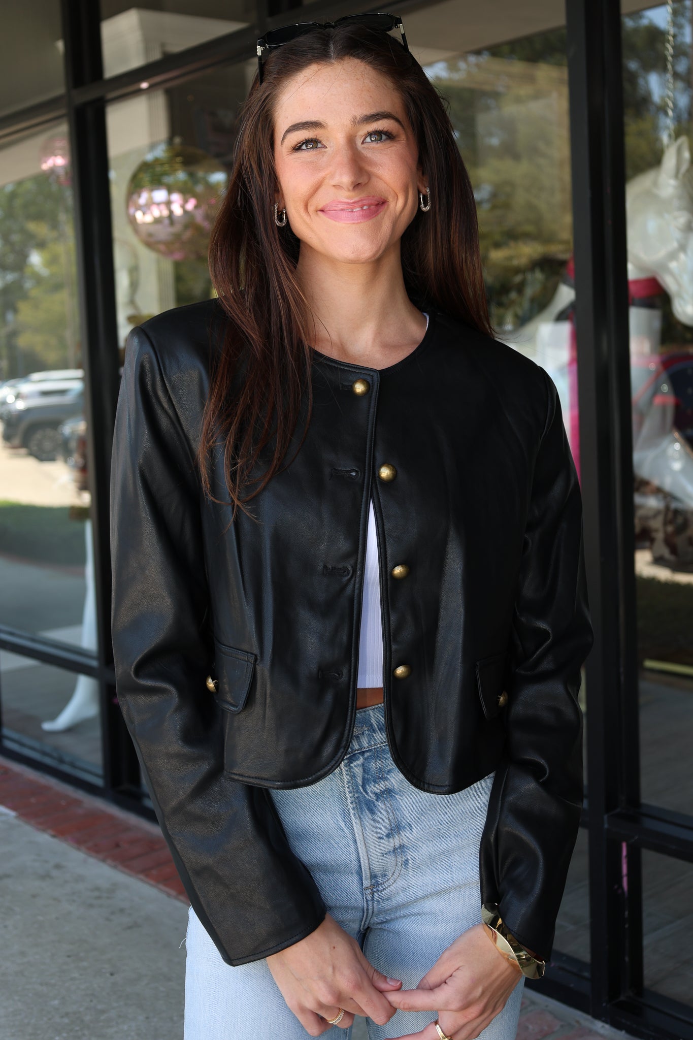 The Brooke Jacket is a stylish must-have with a front closure featuring cool faux leather buttons. It’s the perfect vibe for adding a little edge to any outfit while keeping things super comfy and easy to wear all day. Perfect for layering anytime you want to up your style game!