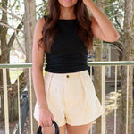 Paperbag High Rise Floral Embroidered Monochromatic Short - Ecru