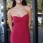 The Carley Dress is a bold statement piece that screams fun. This strapless mini features a classic red base with crisp white polka dots that pop. The pleated top adds dimension and movement, giving you that vintage-inspired vibe with modern edge. Whether you're hitting a party or hanging out friends, this dress keeps you looking fresh and fun.