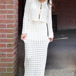 Crochet Knit Long Sleeve Cardigan and Maxi Skirt Set - Beige