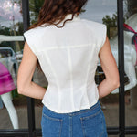 Steve Madden Cassady Pearl Button Sleeveless Top - Antique White
