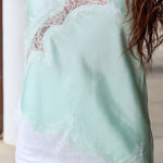 Satin Asymmetrical Sleeveless Top With Lace Detail - Mint