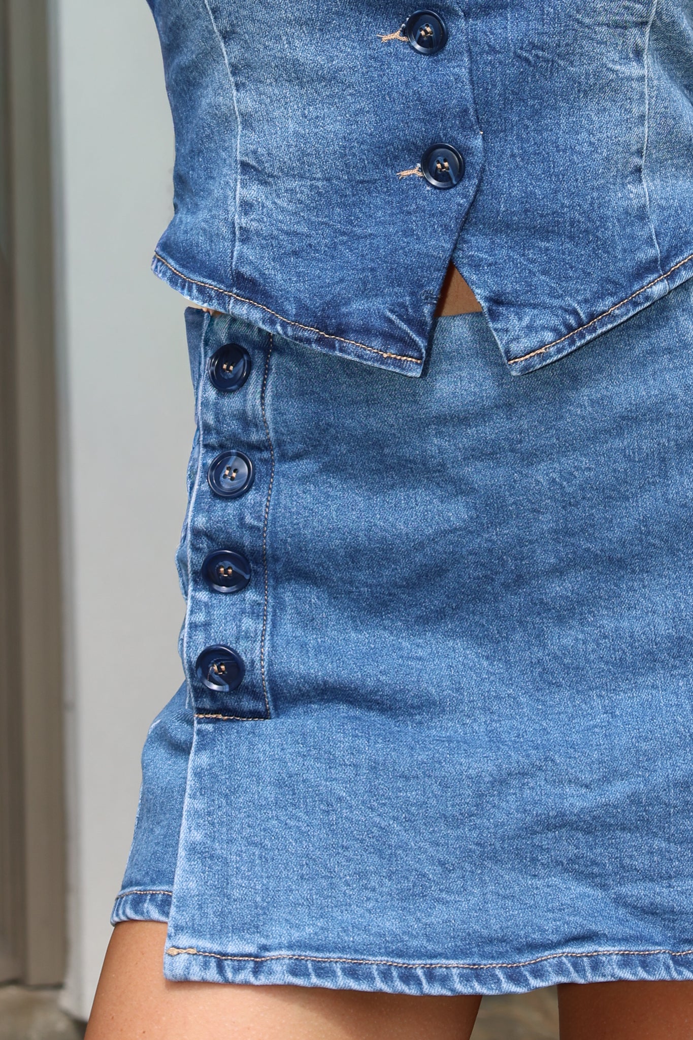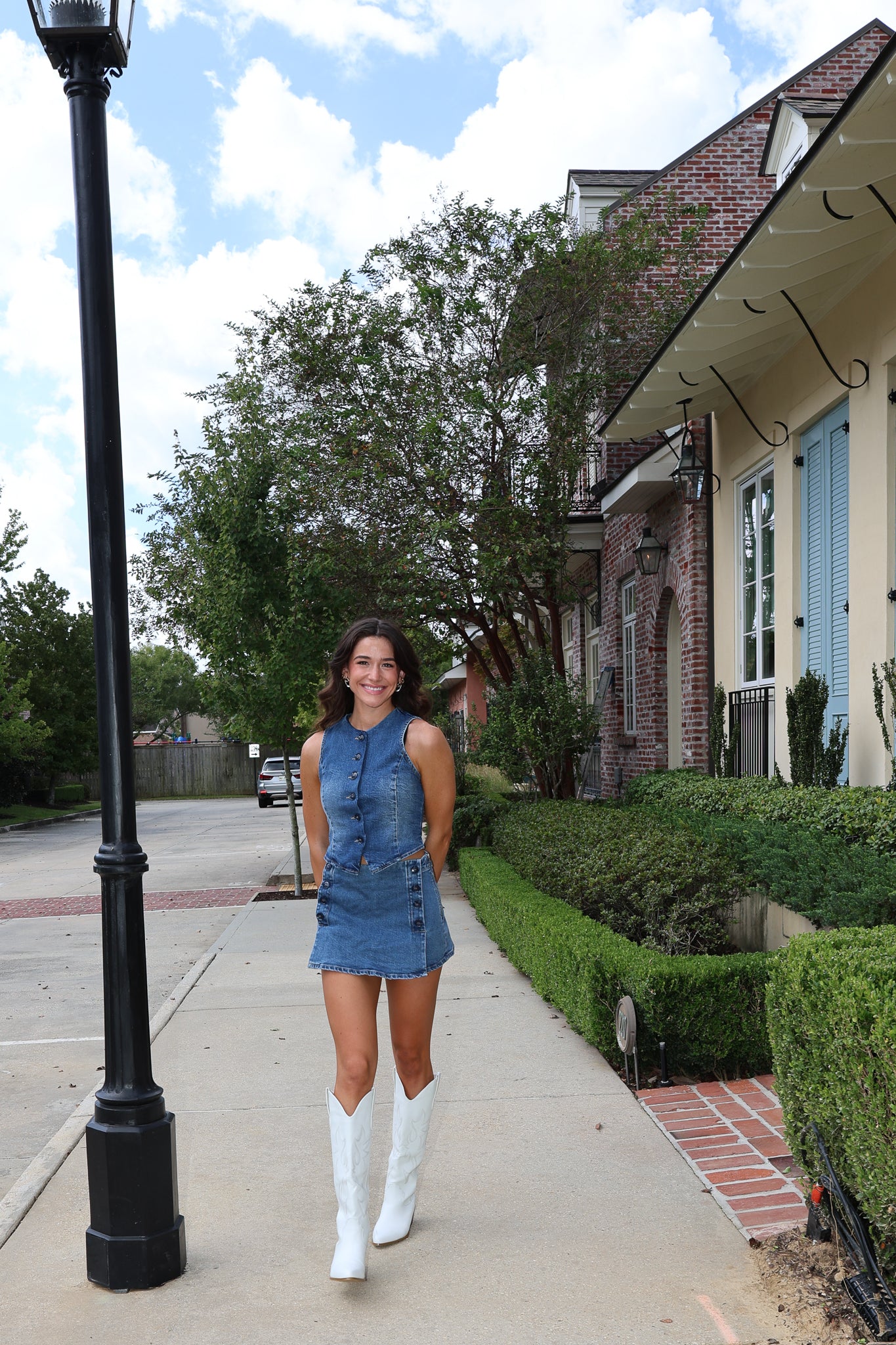 The Charlotte Set is a cool denim sleeveless skort combo that’s perfect for chill days or casual hangouts. It features cute button details that add a little extra style while keeping things easy and comfy. This set is all about effortless vibes with a fun twist.