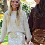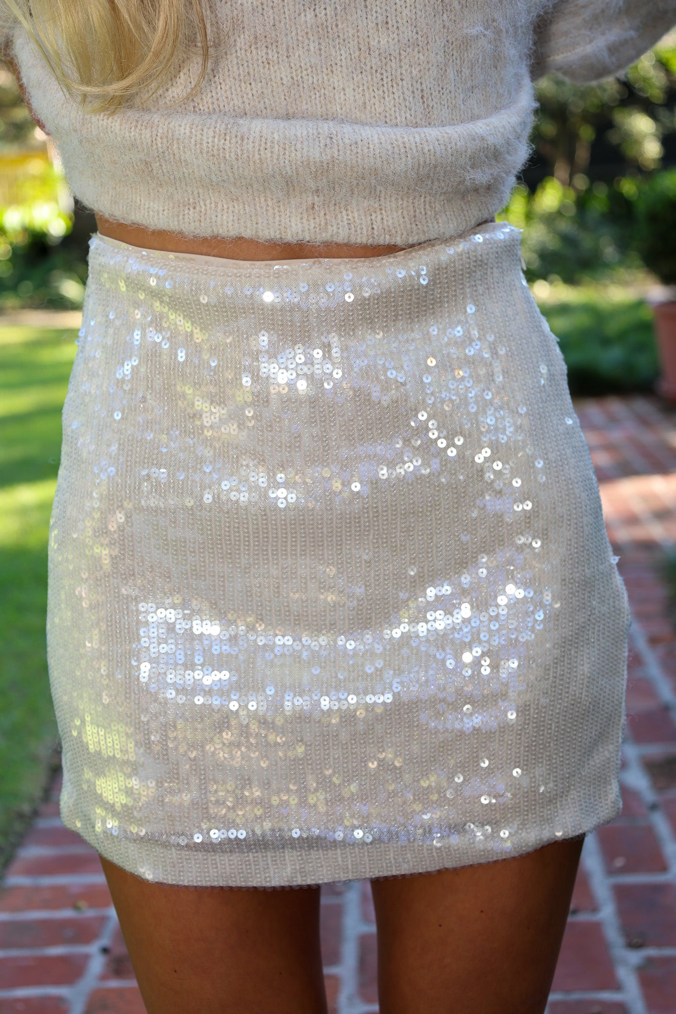 The Darby Skirt by ASTR is a cream-colored sequin mini that’s all about sparkle and ease. With its stretchy pull-on style, it fits like a dream and moves with you—perfect for dancing the night away or just standing out in the crowd.