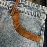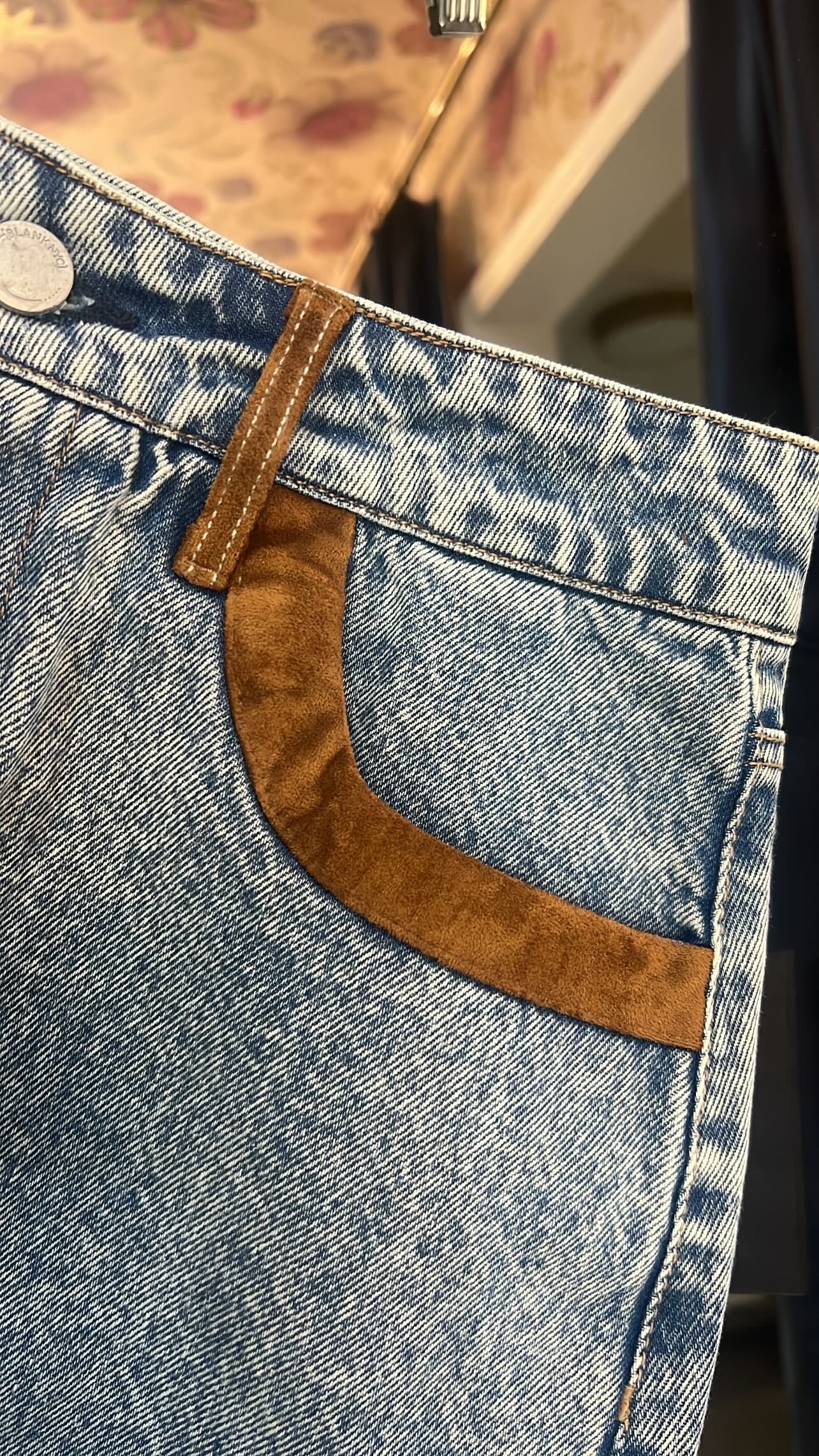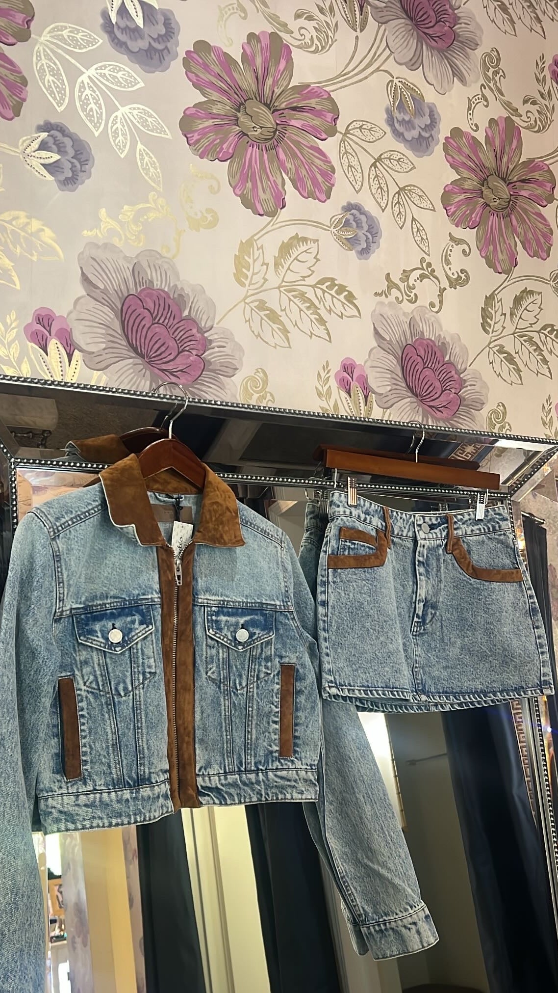 This denim mini skirt with suede trim is a total vibe for your casual looks. Its classic denim style combined with soft suede details gives it a cool, edgy twist. Perfect for hanging out with friends or heading to your favorite spots, it’s comfy, trendy, and easy to pair with your fave tops and sneakers. Step up your style game effortlessly!