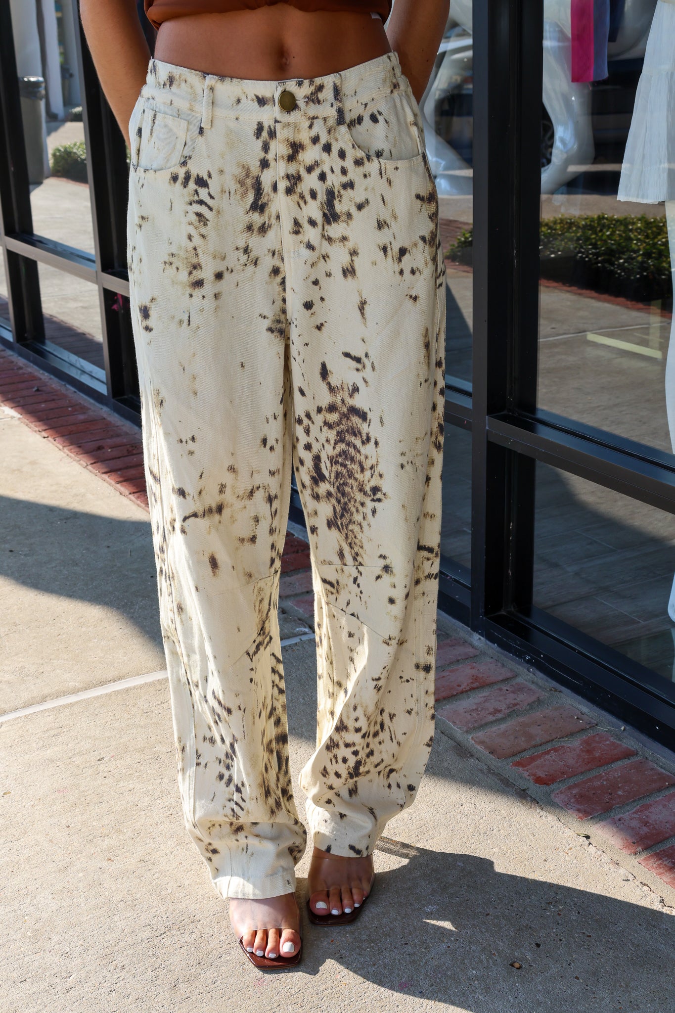 Doe Barrel Jeans feature a relaxed, baggy barrel fit with a subtle animal print for a cool, edgy look. Perfect for chill days when you want to stay comfy but still stand out with a unique style.