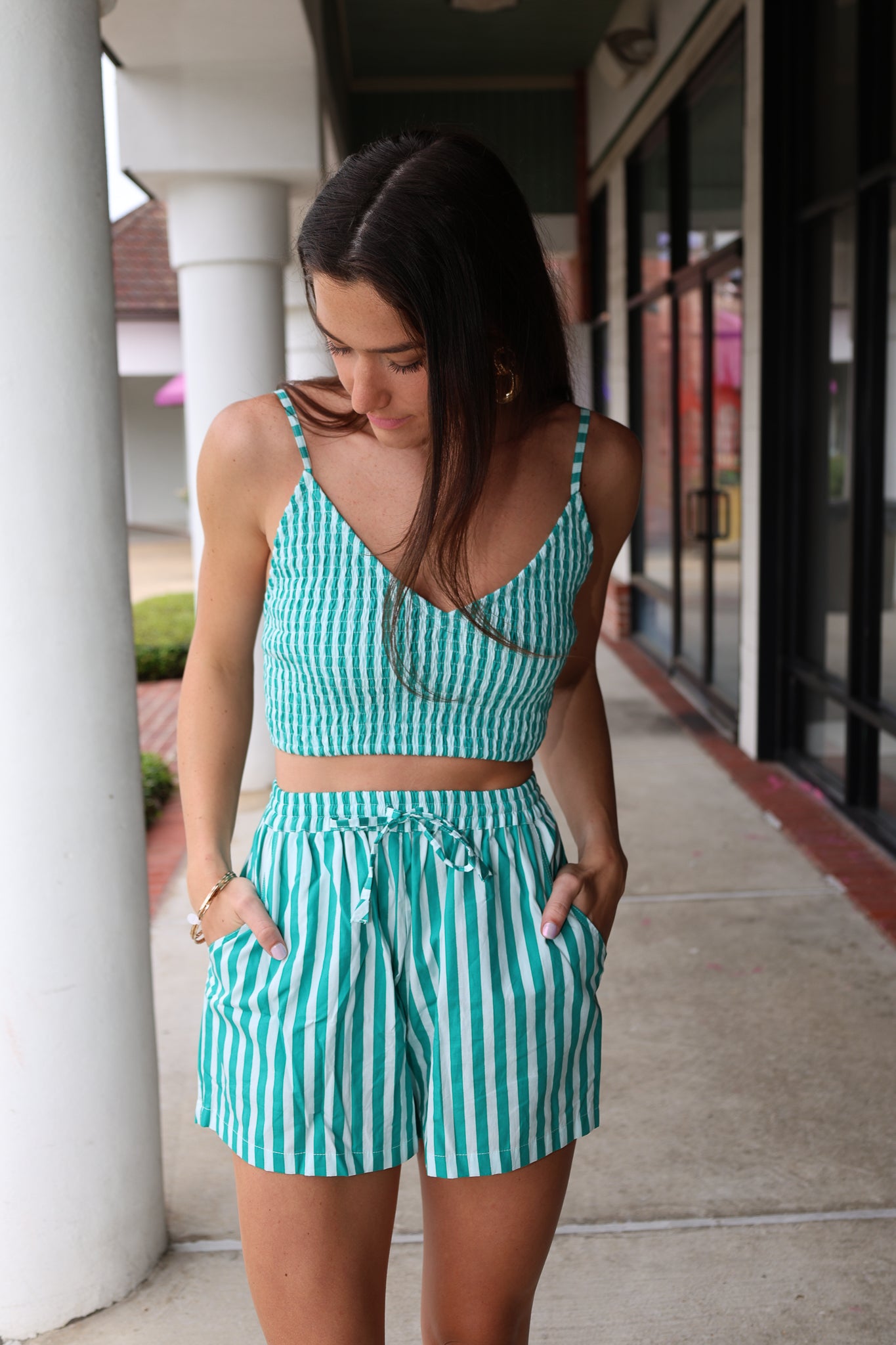 Get ready for some serious style and comfort with the Donovan Poplin Short. With its elastic waist, stripe design, and functional pockets, it's the ultimate mix of fashion and functionality. Plus, it pairs perfectly with the Lila Bralette Top. Dress it up or down, these shorts have got you covered!