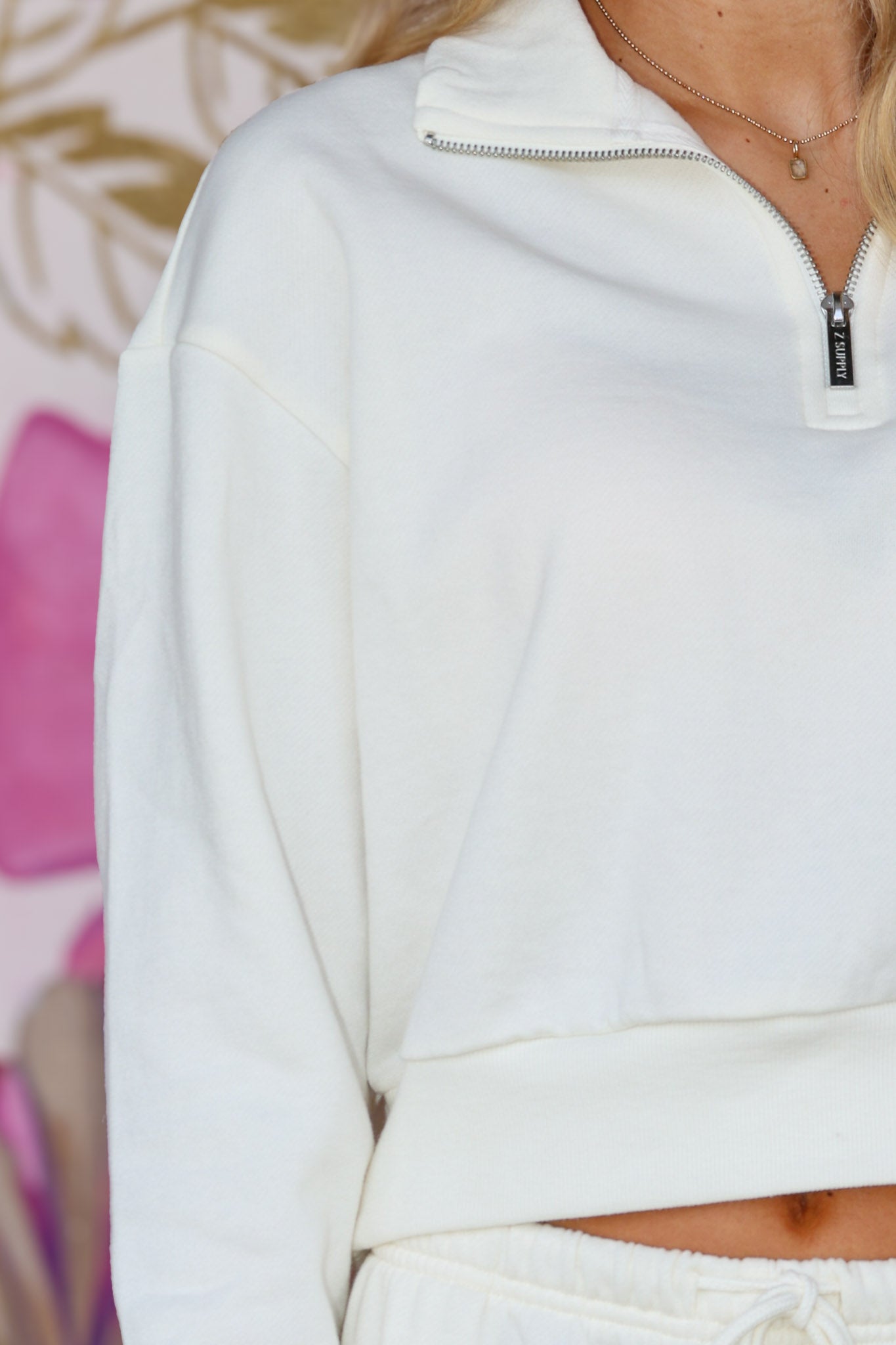 The Downtown Sweatshirt is your go-to piece for effortless style. Soft and cropped, it's perfect for pairing with our Downtown Sweatpants to create the ultimate matching set. Layer it over your favorite tee or wear it solo for that relaxed, put-together vibe. Comfort meets cool.