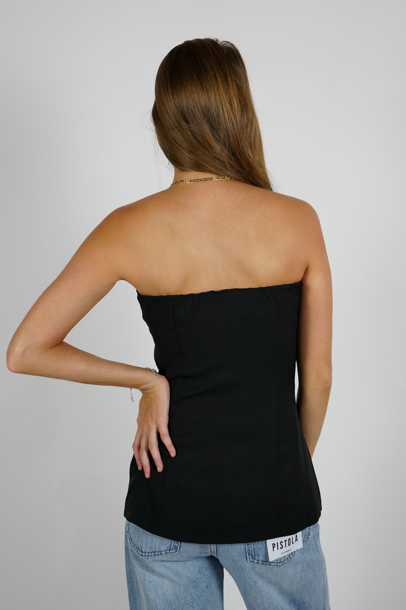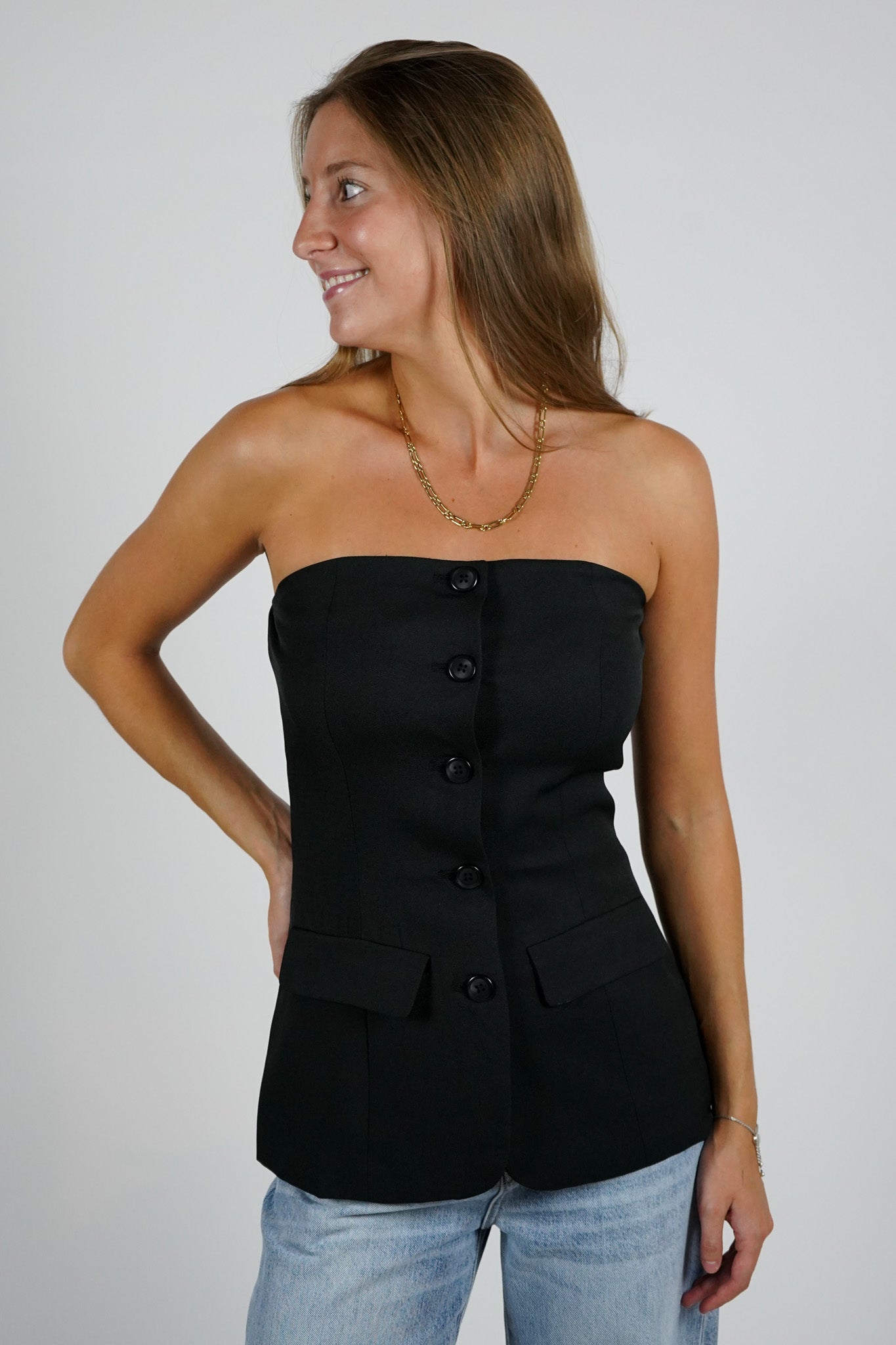 Expertly designed for a sleek and sophisticated look, our Emerald Top features a strapless design with front buttons for added convenience. Elevate your style and effortlessly transition from day to night with this versatile piece. Perfect for any occasion, it's a must-have addition to your wardrobe.