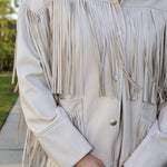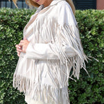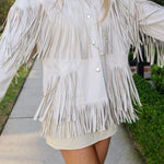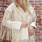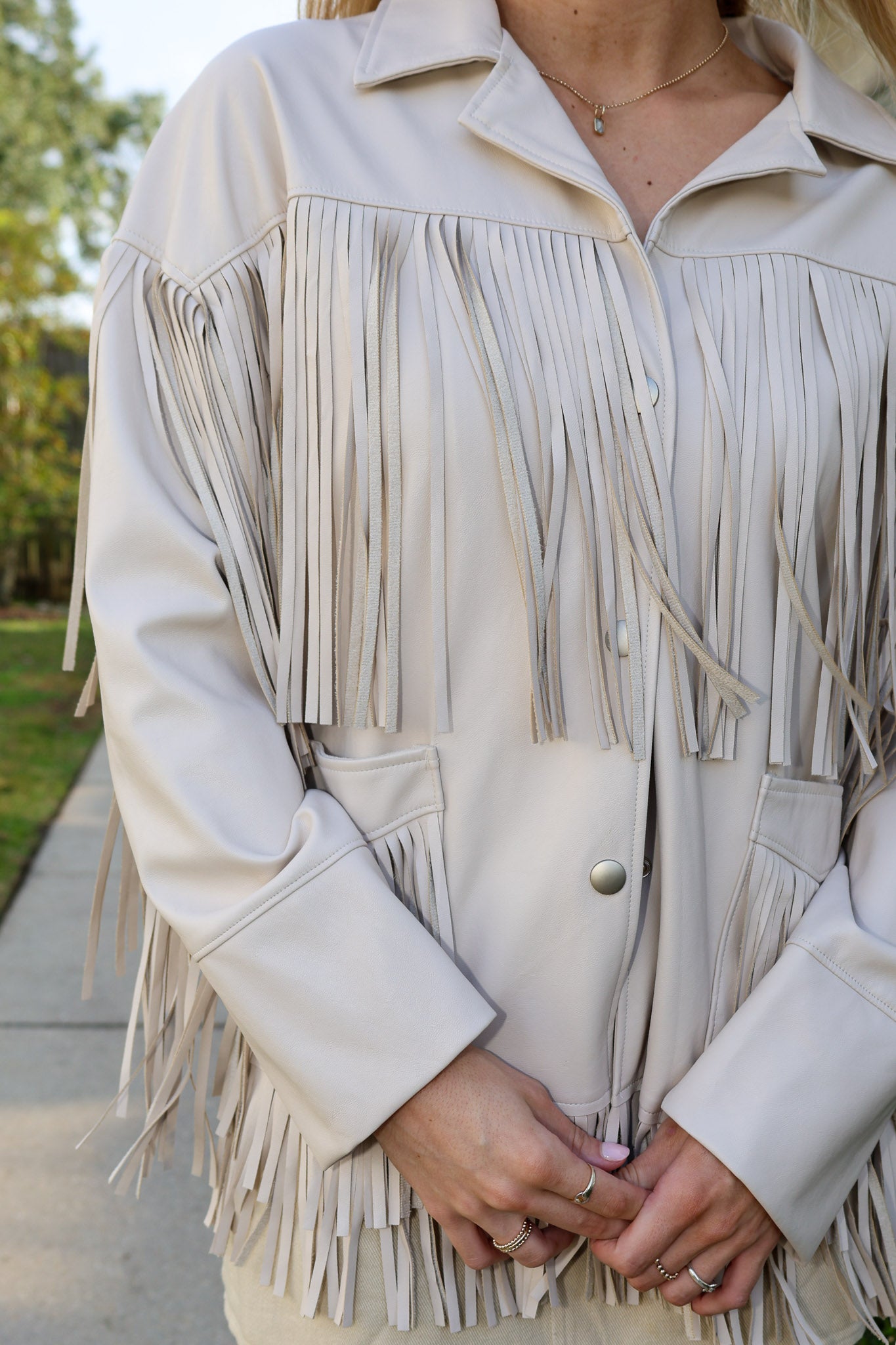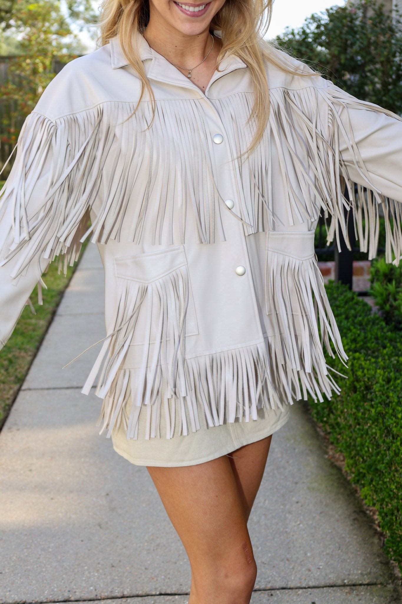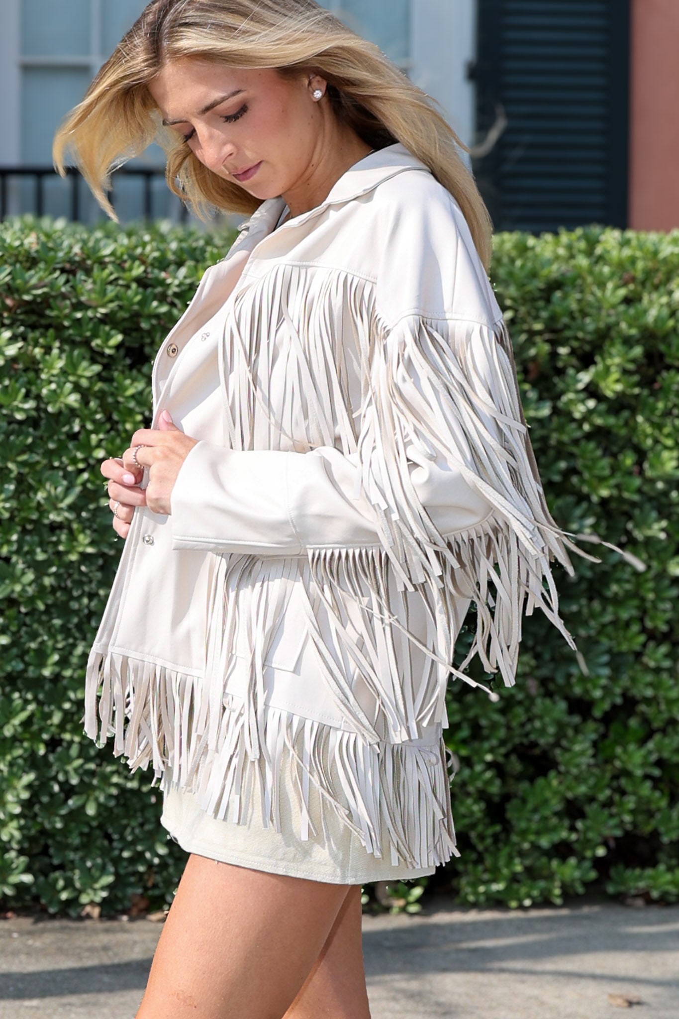 The Farrah Fringe Jacket is the edgy layer you've been waiting for. Made from vegan leather, it's got that cool factor without the guilt. The front snap closure makes it easy to throw on, while the fringe detail adds texture and movement that keeps things interesting. Perfect for staying on-trend while keeping it real.