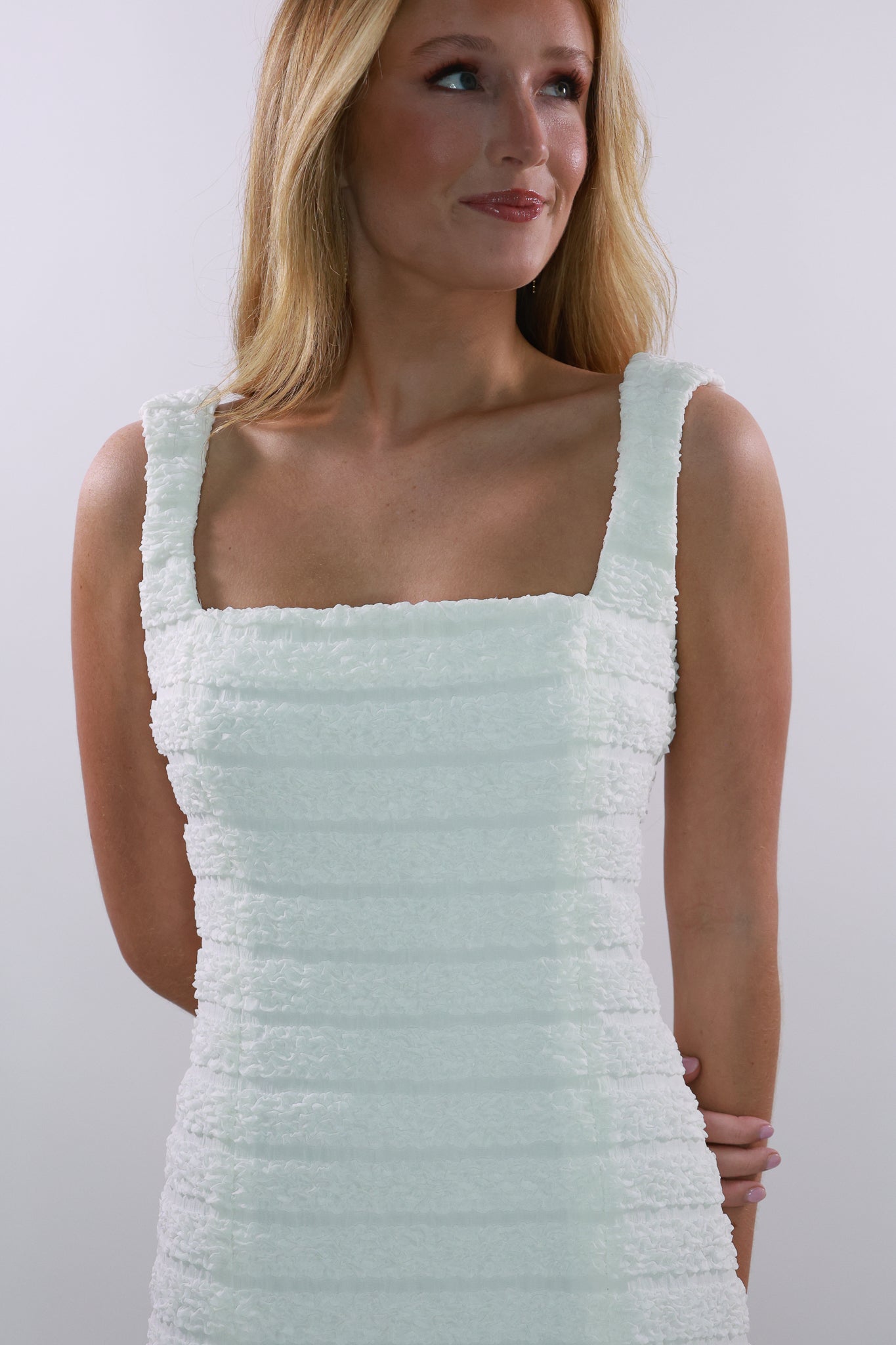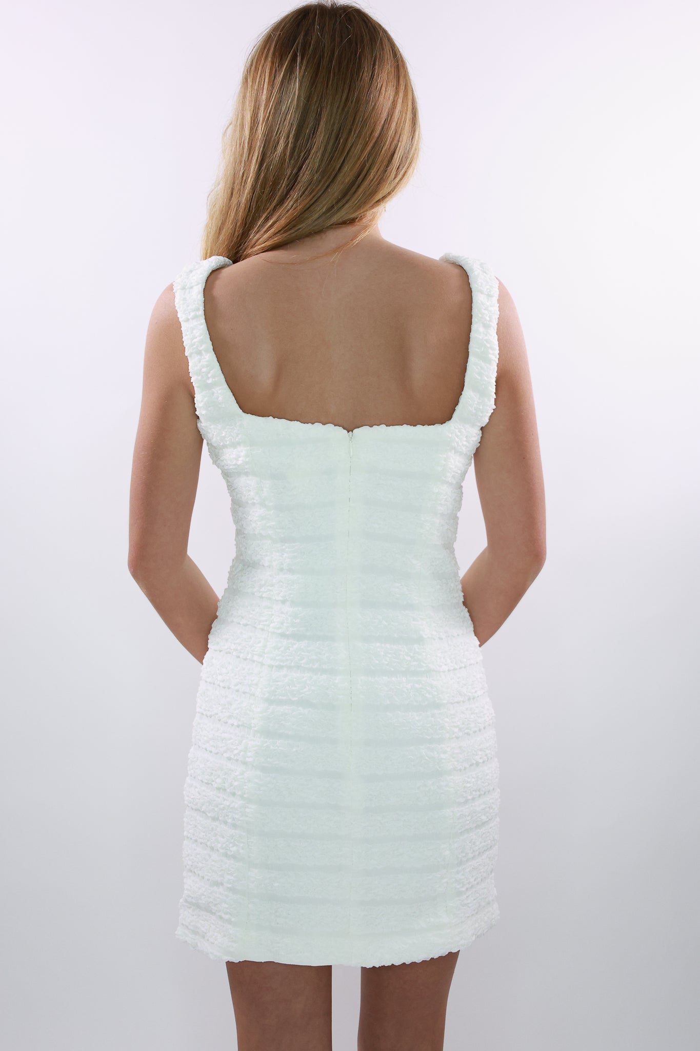 The Fifi Mini Dress by Elliatt is a modern twist on a classic style. Made from crinkle woven fabric, this sleeveless dress features a fitted body-con silhouette. Its sleek and sophisticated design will elevate any look.