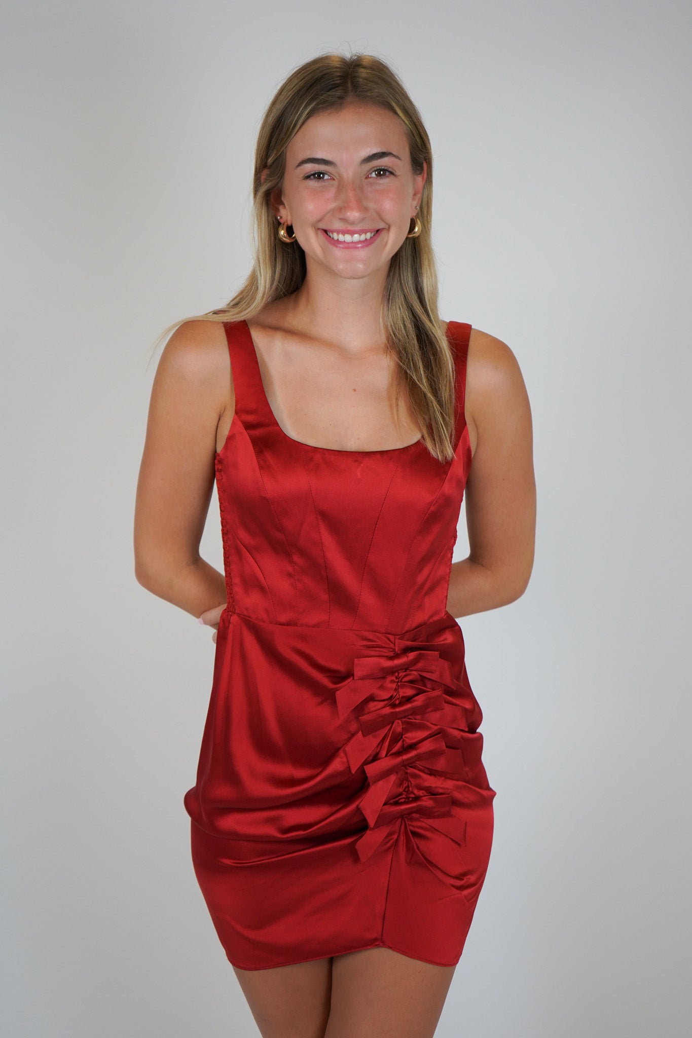 Indulge in luxury with our Fiorella Dress. This 100% silk mini dress features a unique bow detail on the front, adding a touch of elegance to your look. Perfect for any sophisticated occasion.