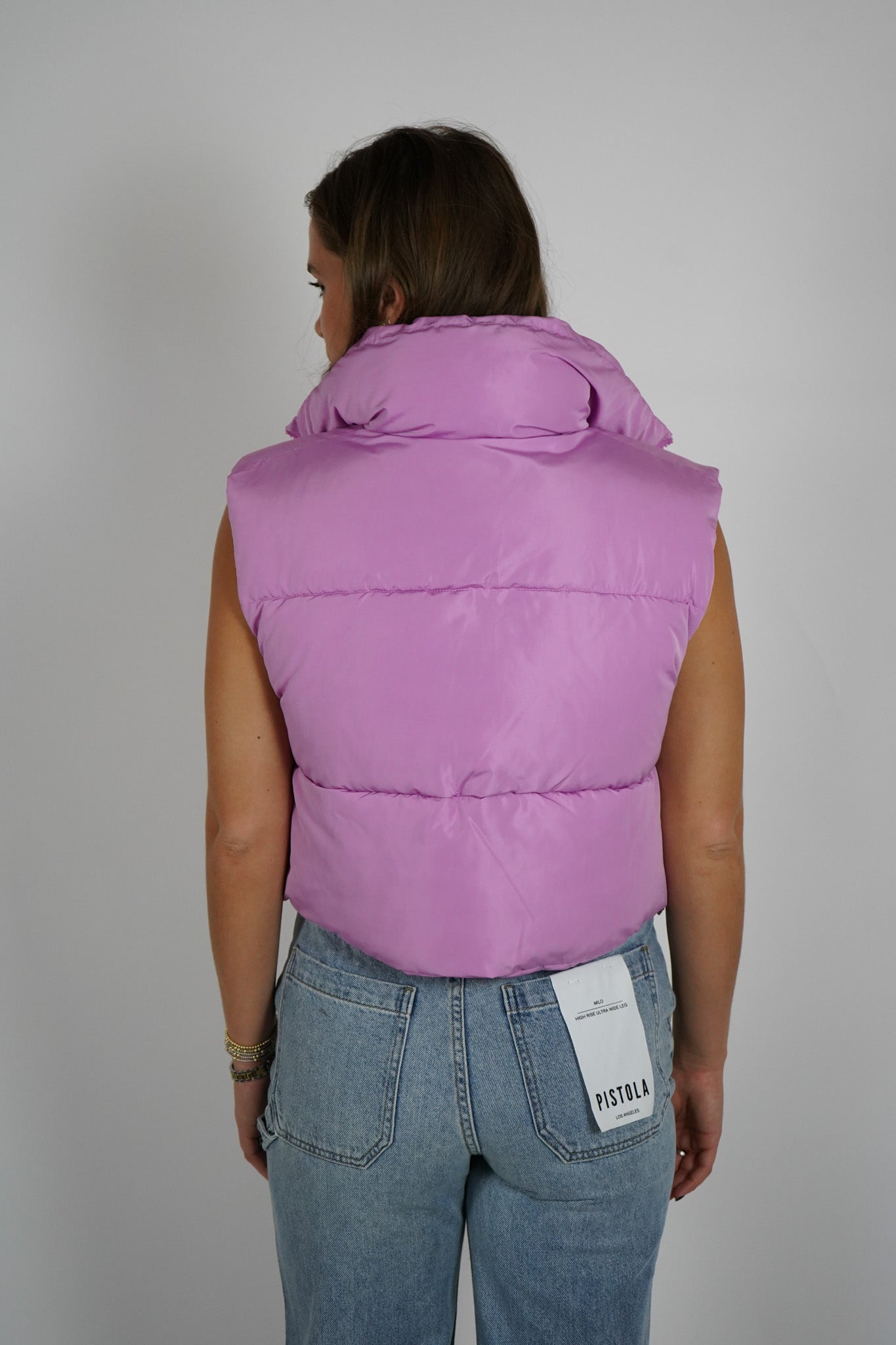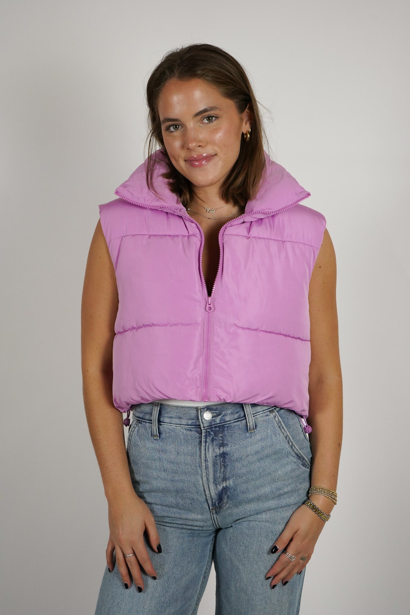Introducing the Forsythia Puffer Jacket - a cropped puffer vest available in two versatile and stylish colors - pink and navy. Stay warm and stylish with this soft and comfortable jacket, perfect for any occasion. Upgrade your wardrobe with the Forsythia Puffer Jacket today.