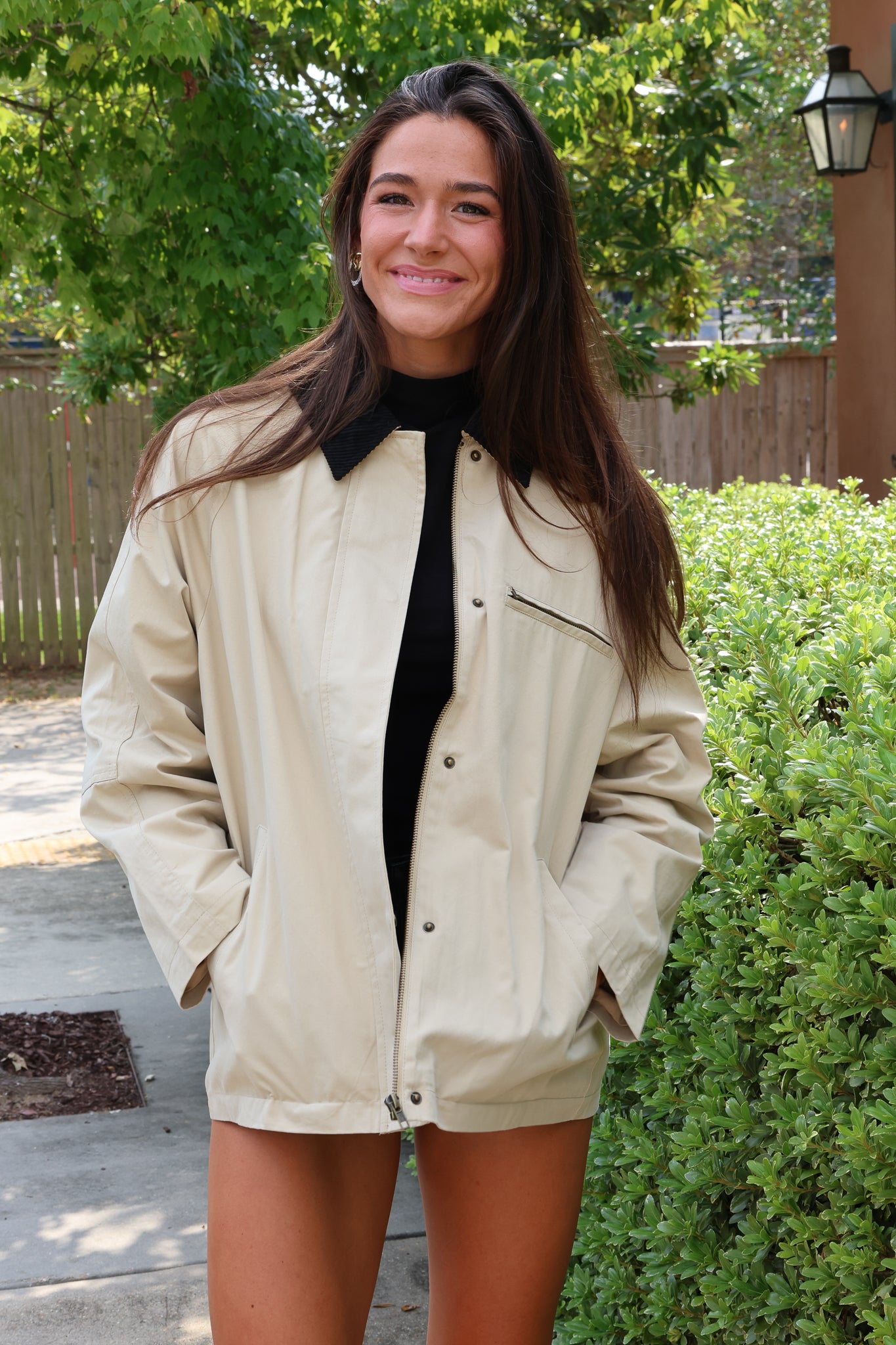 The Galilea Jacket is totally bold and perfect for layering. With its cool contrast collar and boxy shape, it gives off major modern vibes. The front zipper and oversized fit make it super easy to wear, plus the zippered pocket adds some handy storage. Fully lined for comfort, this jacket instantly levels up any casual outfit with a sleek, stylish edge.