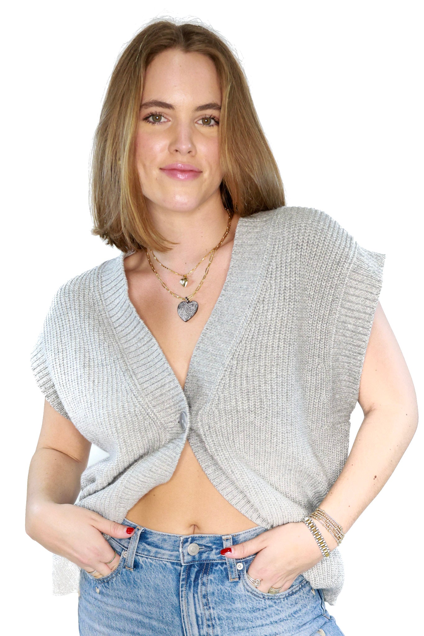 The Giorgia Sweater Vest is a versatile addition to any wardrobe. With its three-button oversized design, this vest provides effortless style and comfort. Made from high-quality materials, it is both durable and fashionable. Perfect for layering or wearing on its own, this sweater vest is a must-have for any fashion-forward individual.