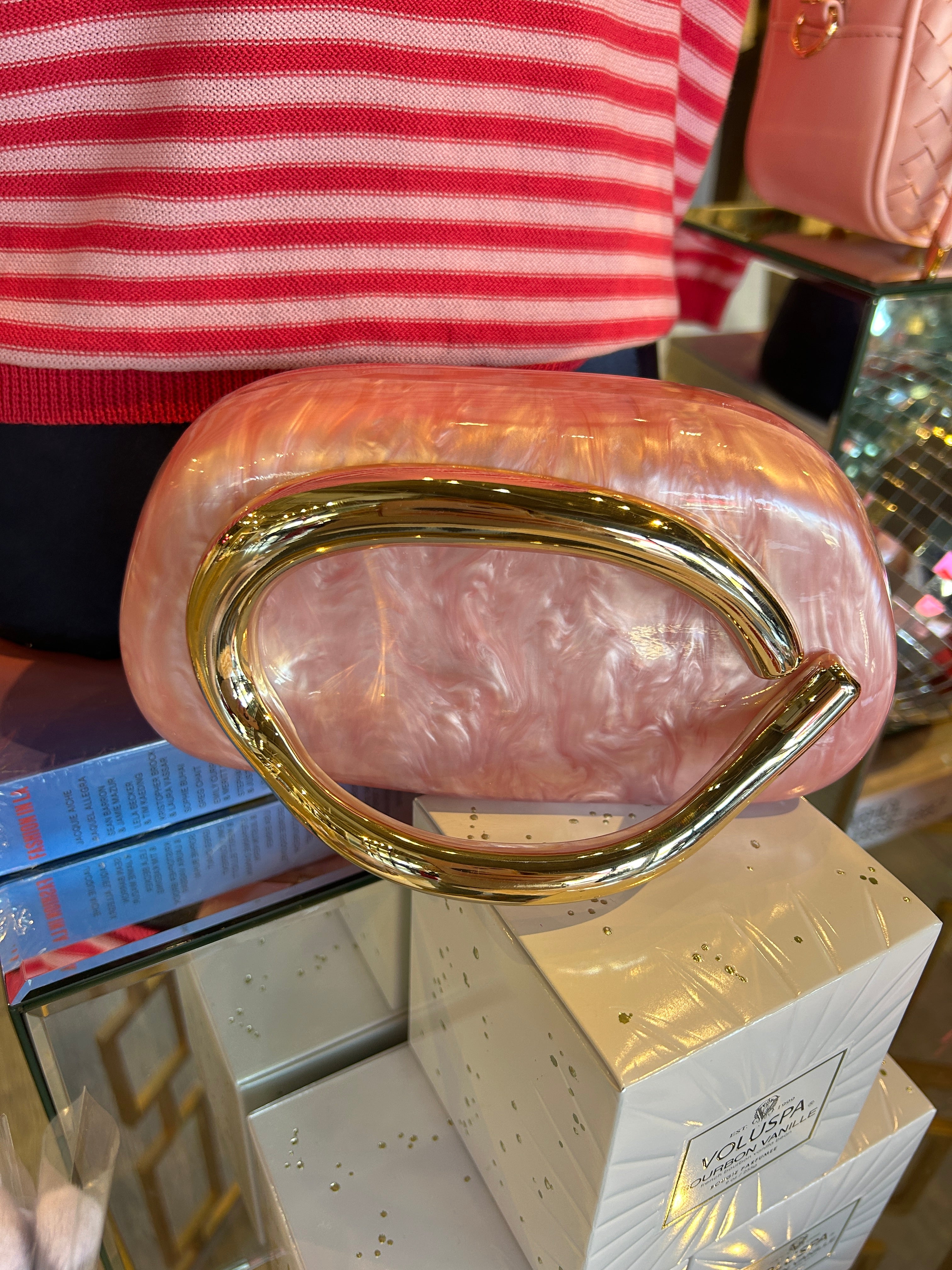 Meet the Girly Pearly Bag—your fabulous companion for all things fun and fancy! This pink pearl hard case clutch, complete with a snazzy gold accent handle, is like a party for your arm. Perfect for those nights when you want to look posh without taking yourself too seriously. Grab it and go sparkle!