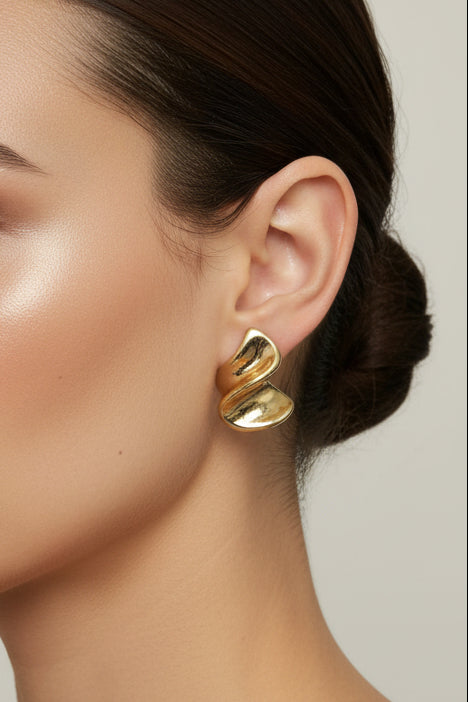 Catch the light with these elegant gold wave post earrings, featuring a swirling design that adds movement and sophistication to any look. Perfect for everyday wear or special occasions, these timeless pieces bring effortless style to your collection.