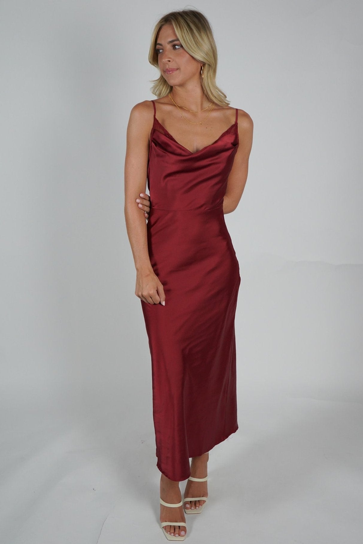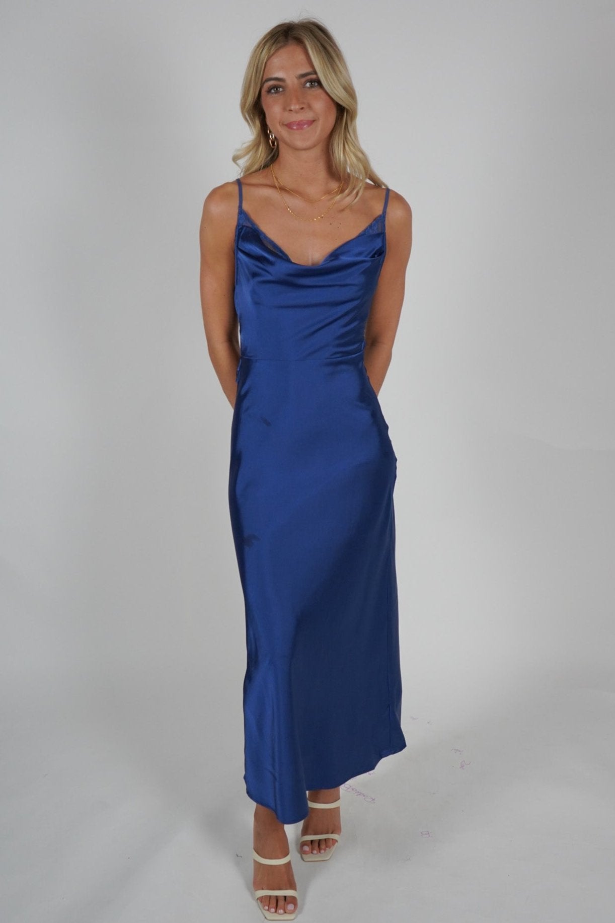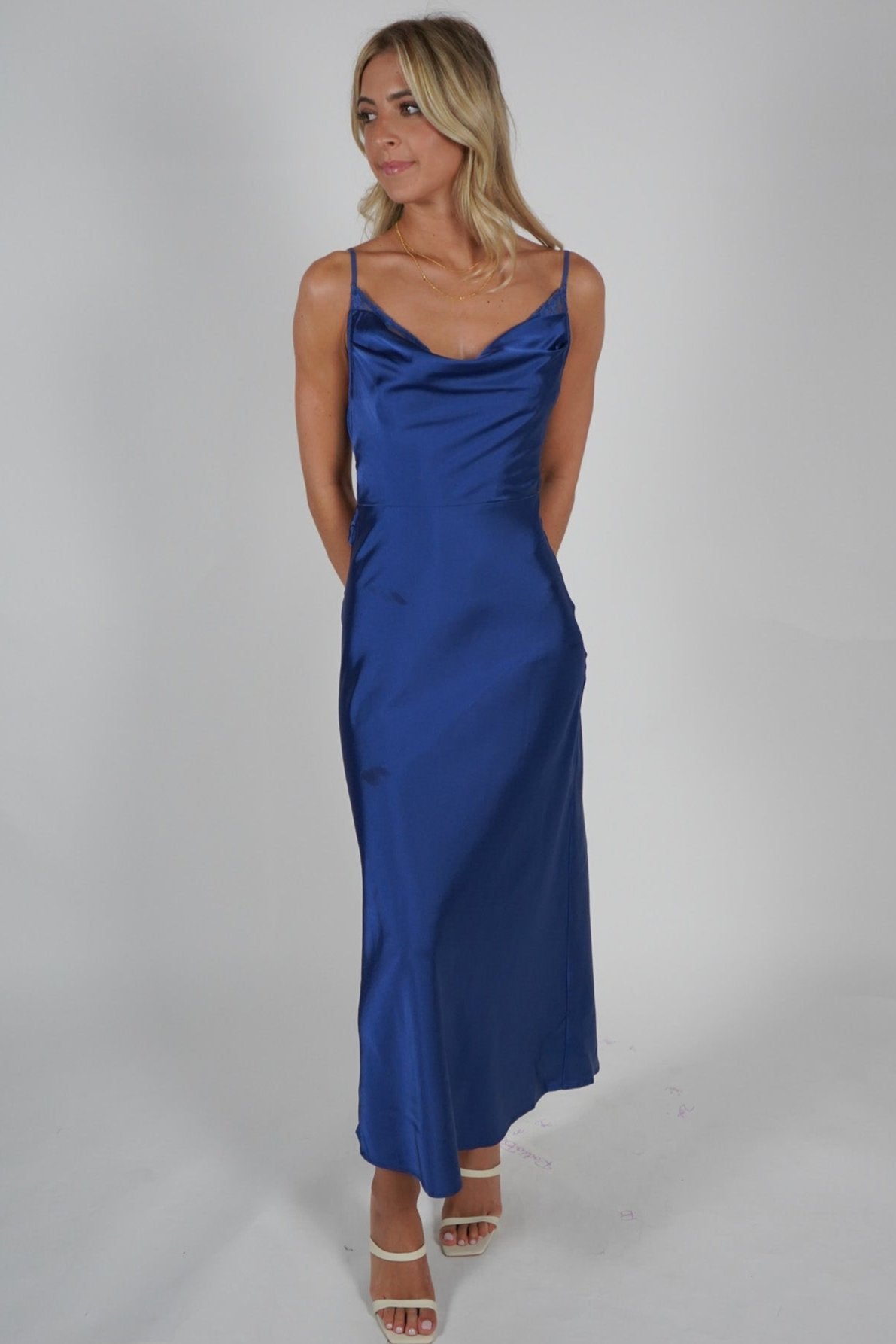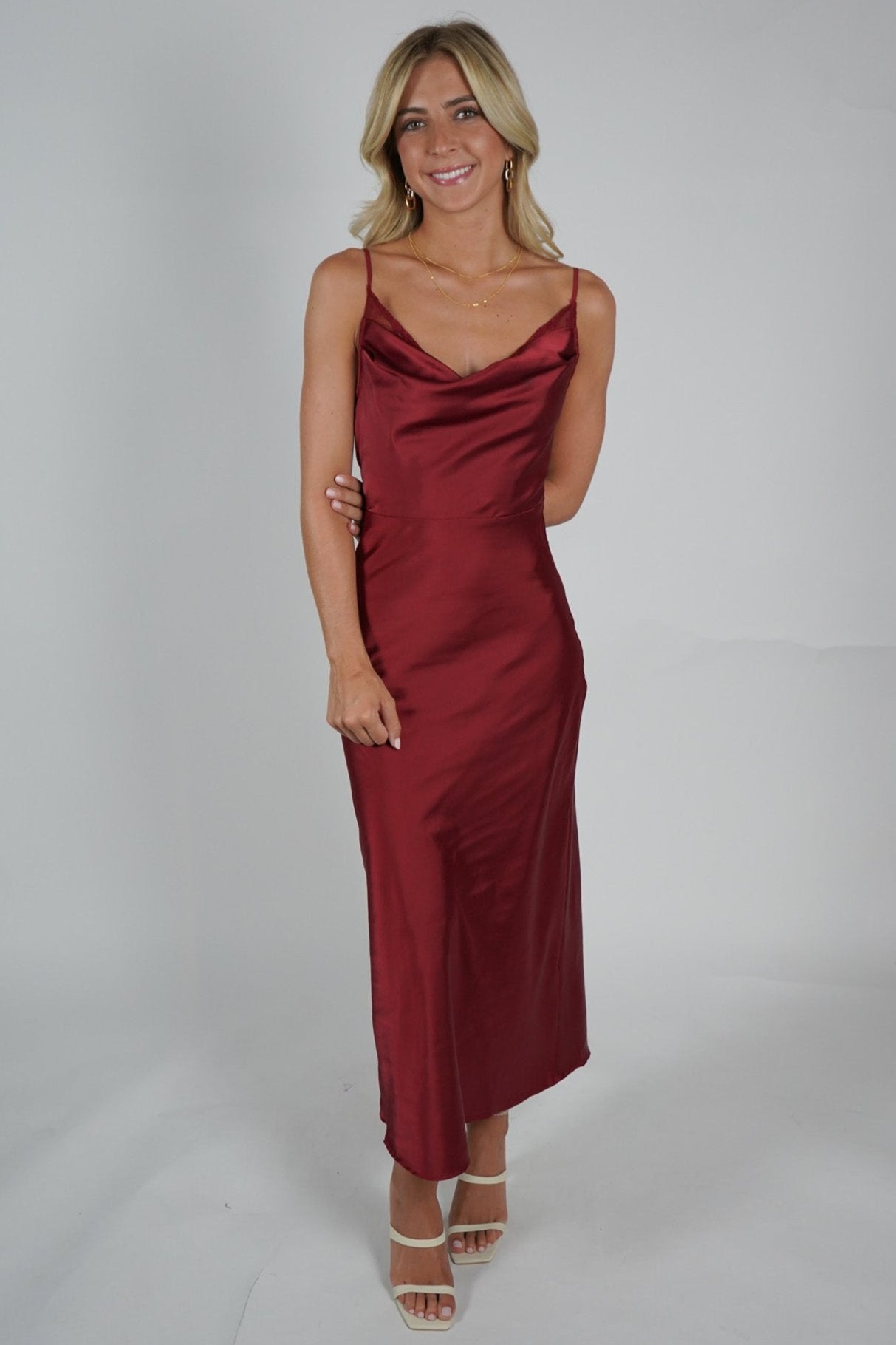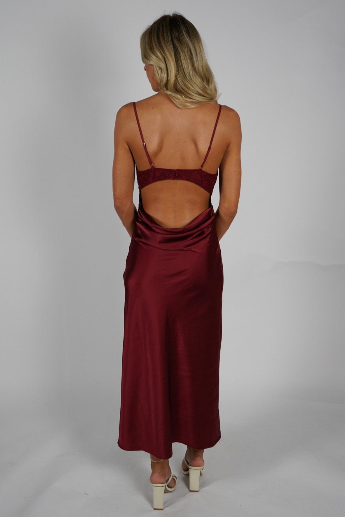 The Grace Midi Dress is expertly designed with a silky material, cowl neckline, and delicate lace details for a sophisticated look. Its open back adds a touch of allure. Available in two elegant colors. Elevate your wardrobe with this versatile and feminine dress.