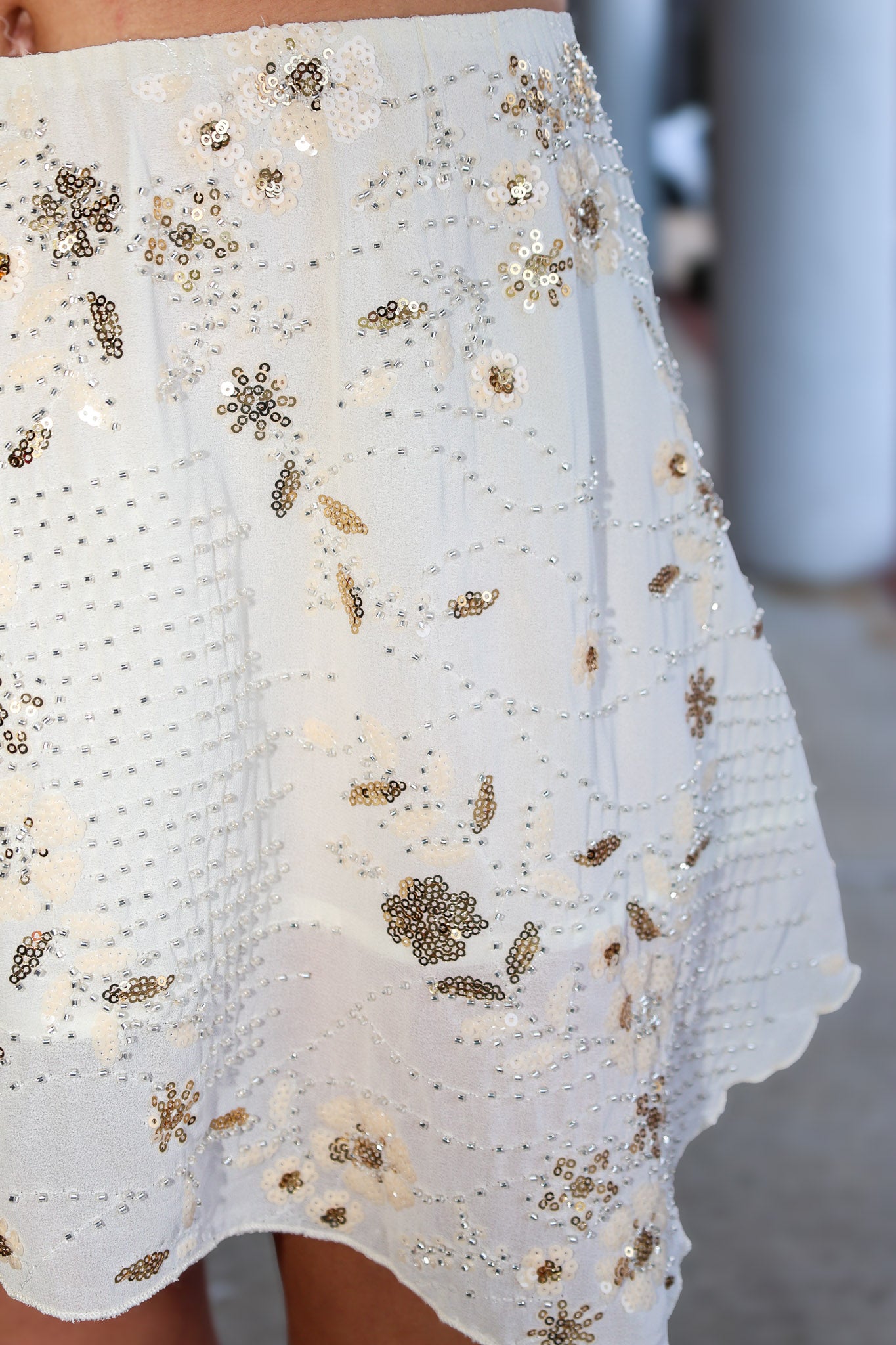 Woven Beaded Asymmetrical Mini Skirt - Cream