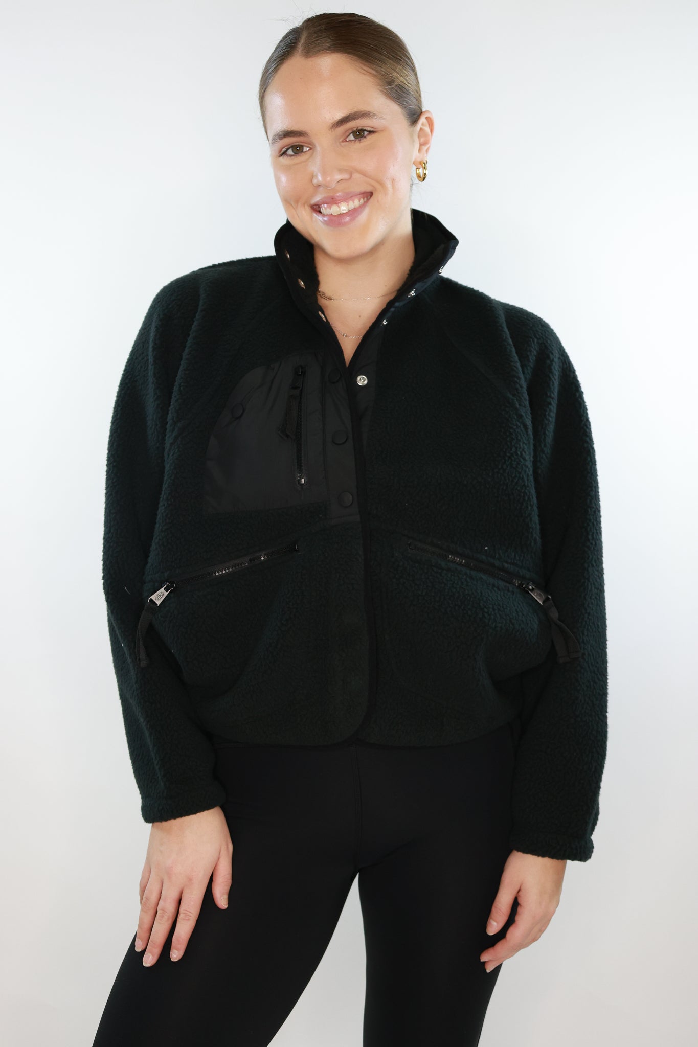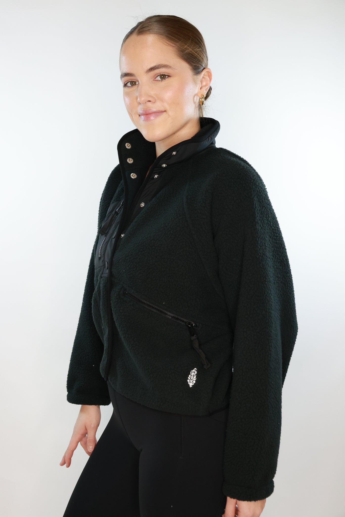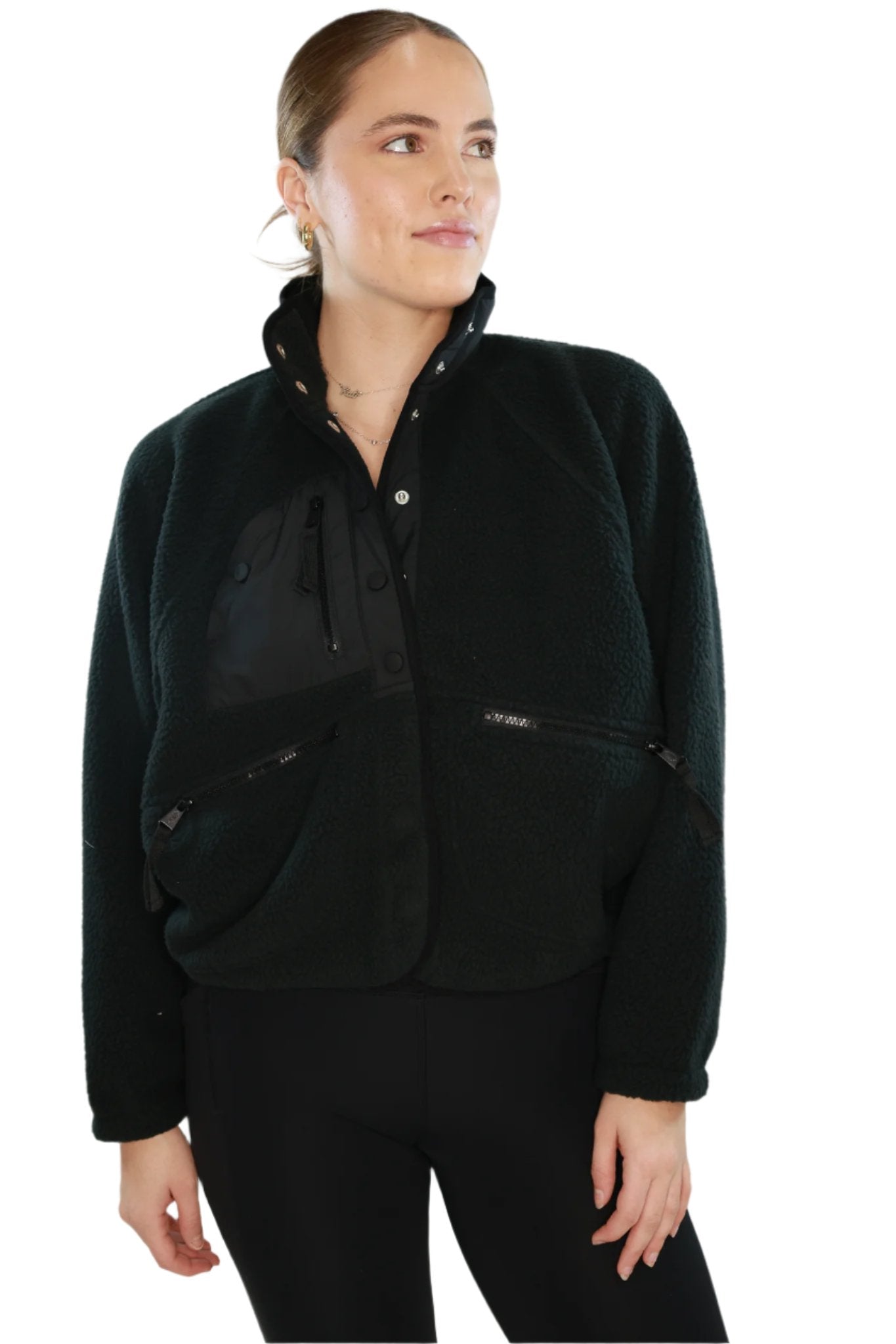 The Hit The Slopes Jacket by FP Movement is a stylish and functional black snap up jacket made from warm and cozy fleece material. Stay comfortable and on-trend while hitting the slopes in this versatile and durable jacket.