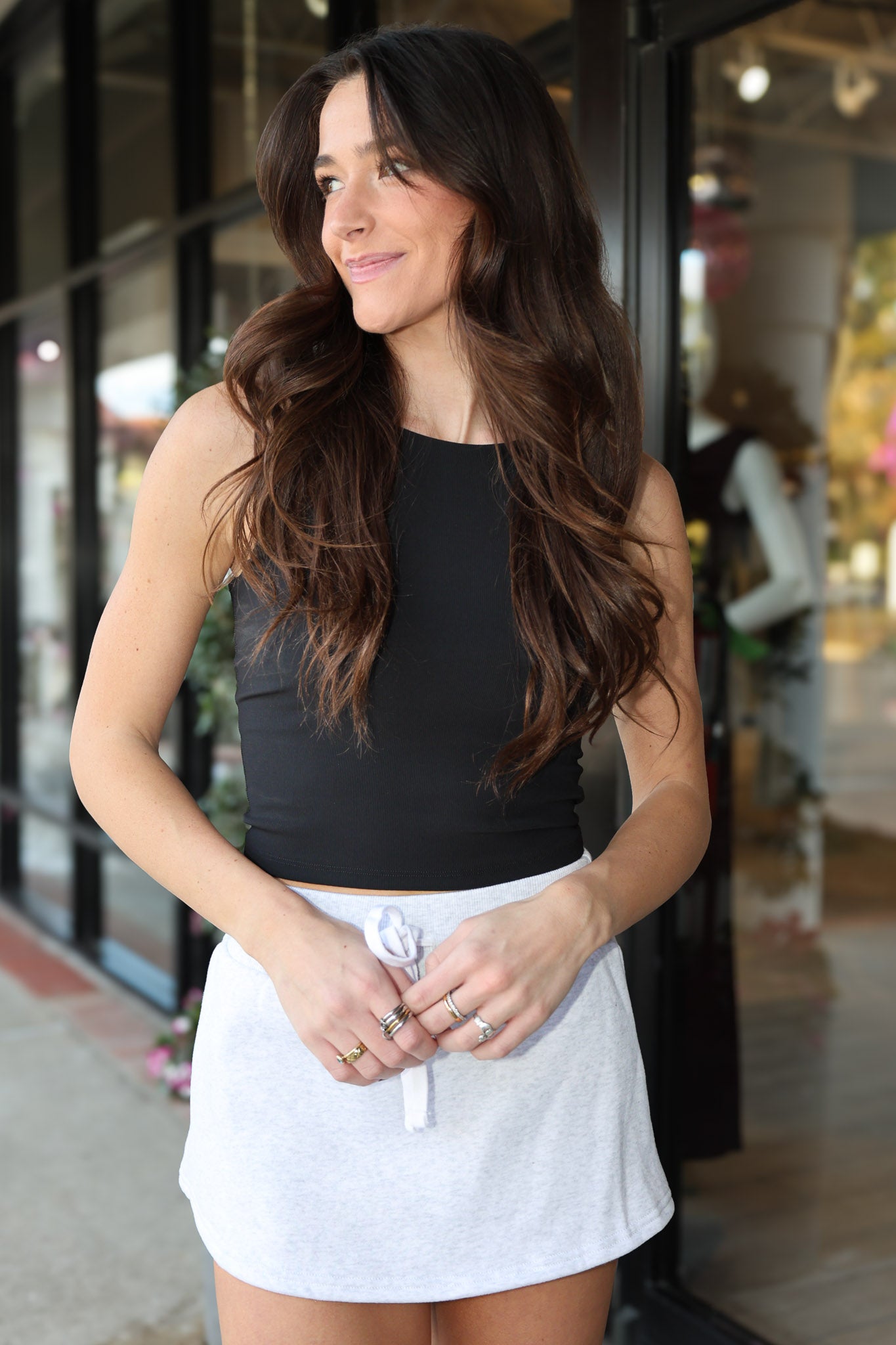 The Jemma Fleece Skirt is cozy meets cute. This mini A-line features a wide waistband and drawstring for the perfect fit, plus you can choose between classic black or soft light grey. Throw it on with your favorite hoodie and you're golden.