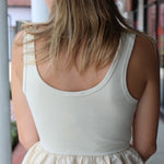 The Jess Top by Steve Madden is a cool mixed media tank with ribbed fabric and a fun peplum flare. It’s perfect for adding a trendy vibe to your outfit while keeping things comfy and casual. Great for hanging out or going out with friends!