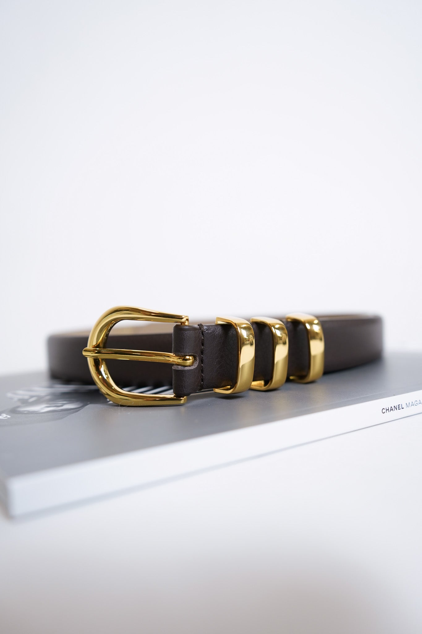 - Polished gold-tone hardware