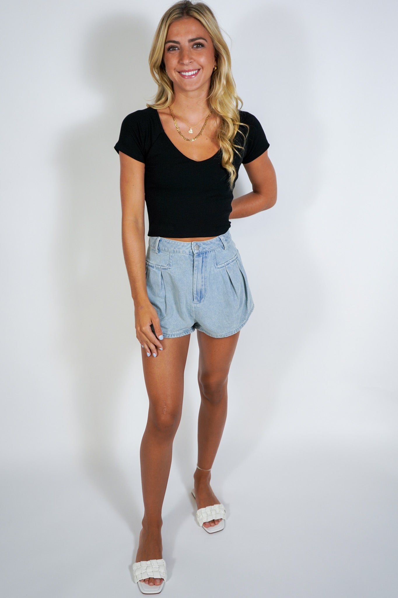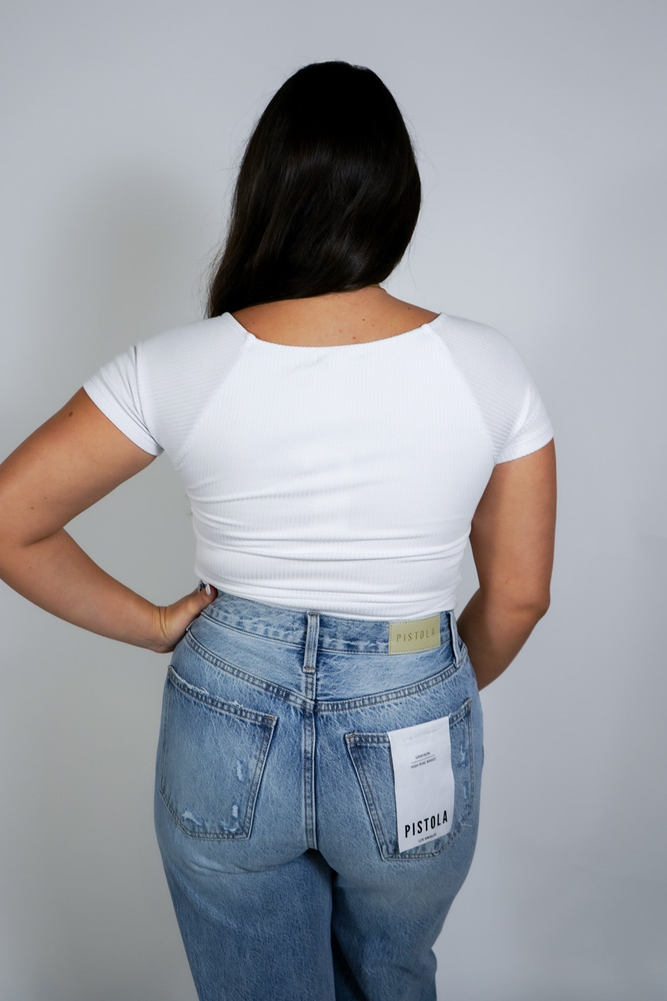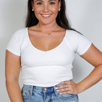 The Kallen Rib Top is the most perfect basic ribbed tee! It comes in both black and white and is cropped for a stylish twist. Double layered for comfort. No more boring basics!
