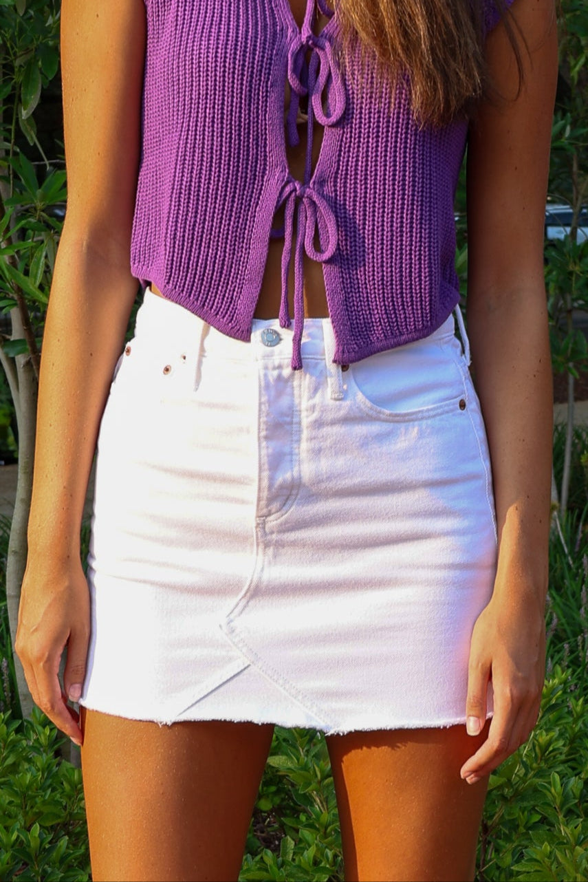 Expertly crafted in white denim, the Kat High Rise Skirt by Pistola features a frayed hem for a touch of chic edge. Elevate your style with this mini, perfect for day or night.