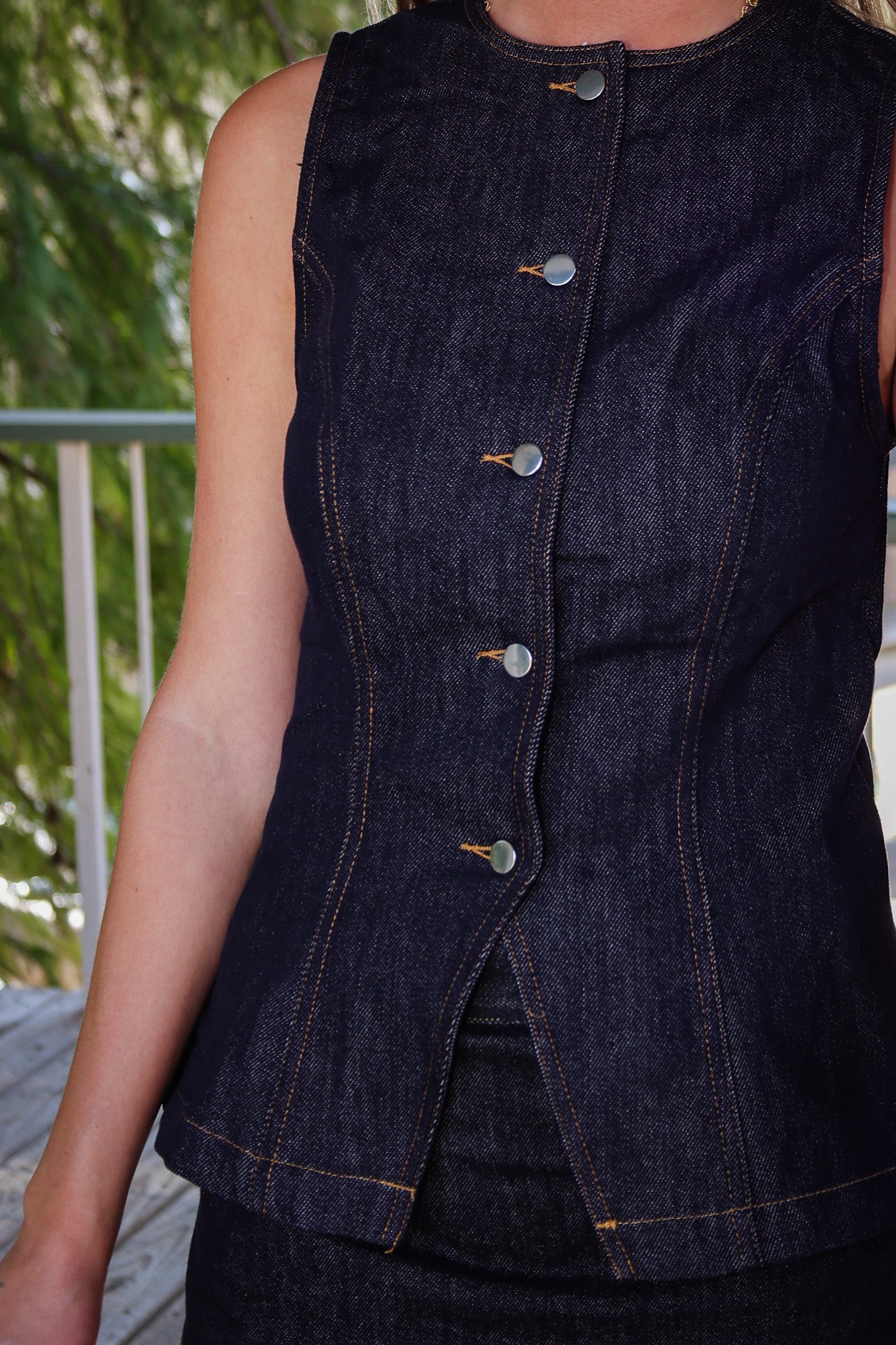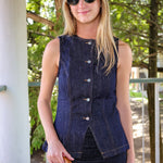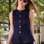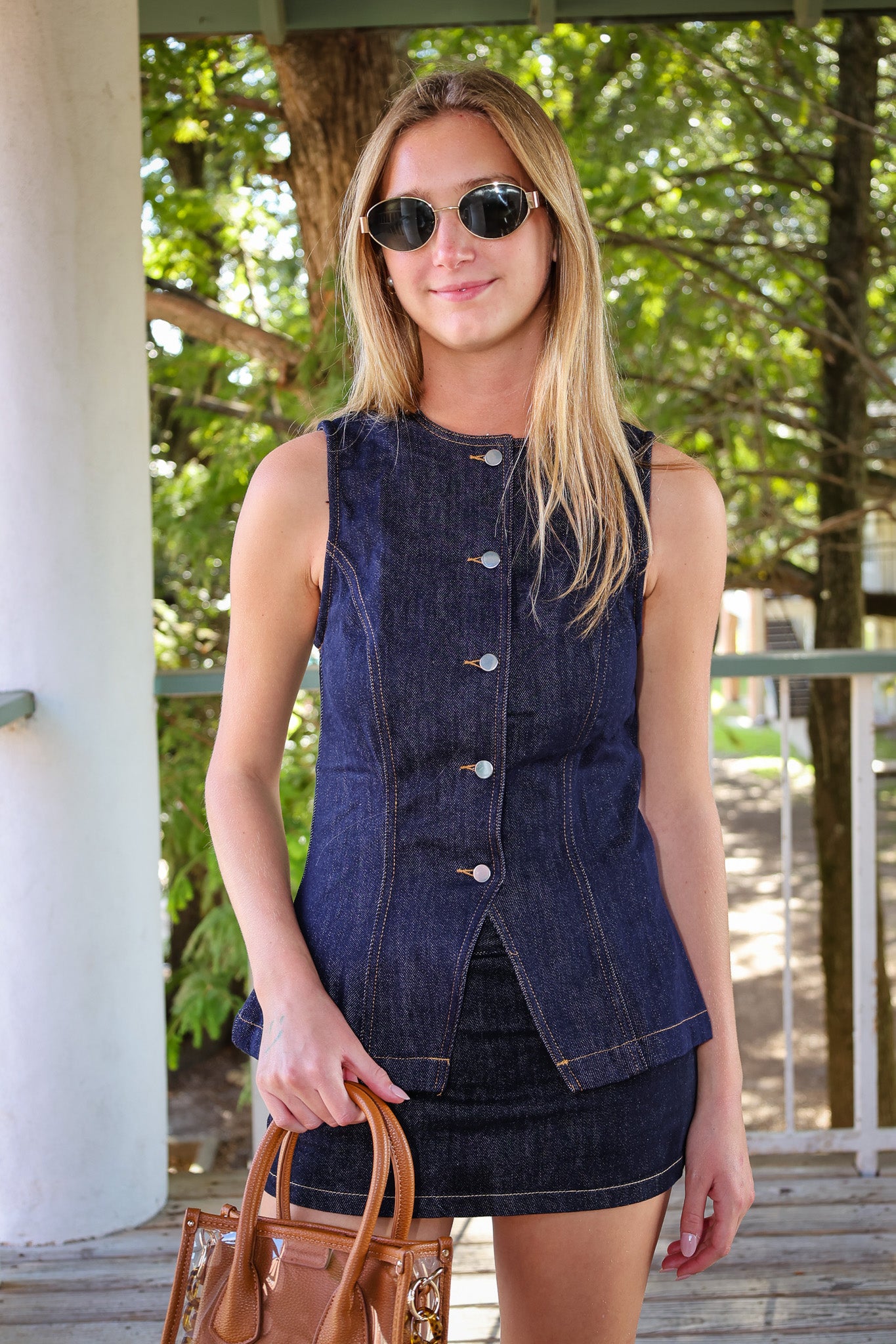 The Kia Set is a cool denim mini skirt outfit that’s perfect for gameday vibes. It features a sleeveless, high-neck top with built-in boy shorts for extra comfort and coverage. This set is super stylish and easy to wear for hanging out with friends or going to your favorite spots. Keep it casual yet trendy with this must-have look!
