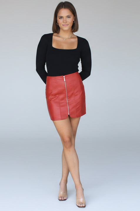 The Layla Mini Skirt by Free People is giving main character energy. This red vegan leather piece features a sleek front zipper that's both functional and fashion-forward. Perfect for styling with crop tops, oversized tees, or leather jackets, it's the ultimate statement piece for anyone who wants to stand out. Edgy, versatile, and totally wearable.