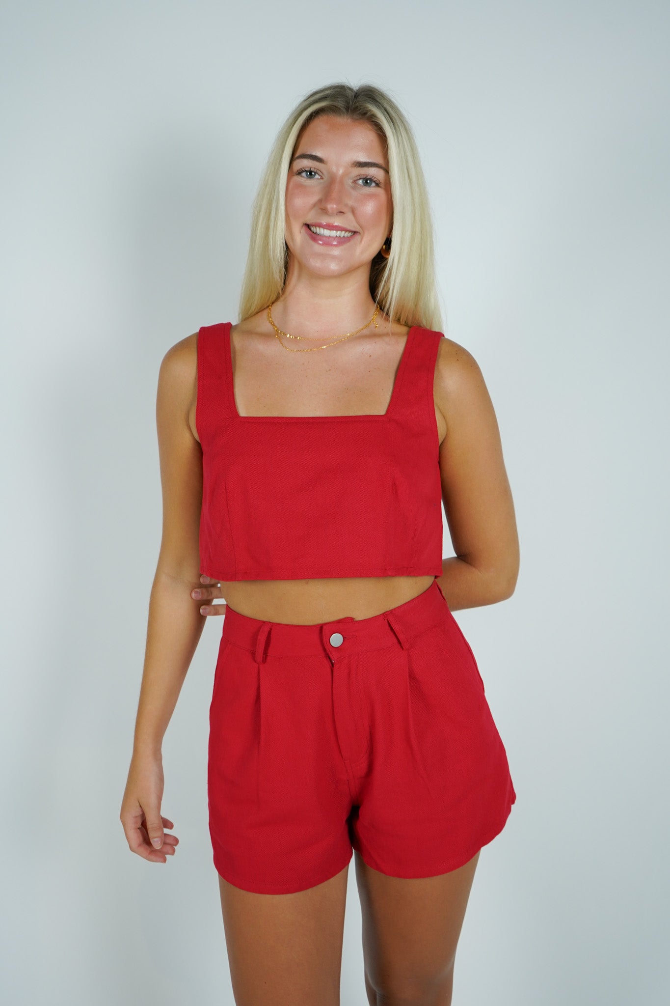 Get ready to turn heads in our Leslie Crop Top! Featuring a playful red bow tie in the back, this top is both stylish and unique. Show off your fun side and stand out from the crowd with this must-have piece.