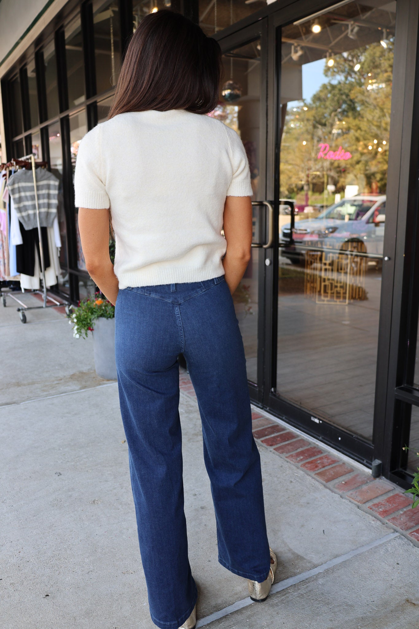 The Libre Wide Leg by Free People is the retro-inspired denim upgrade your drawer needs. Crafted from soft stretch denim, these jeans feature an inverted yoke and seamed paneling that create a flattering, elevated silhouette. The wide leg gives you that vintage vibe with modern comfort. Throw them on and feel instantly cool.