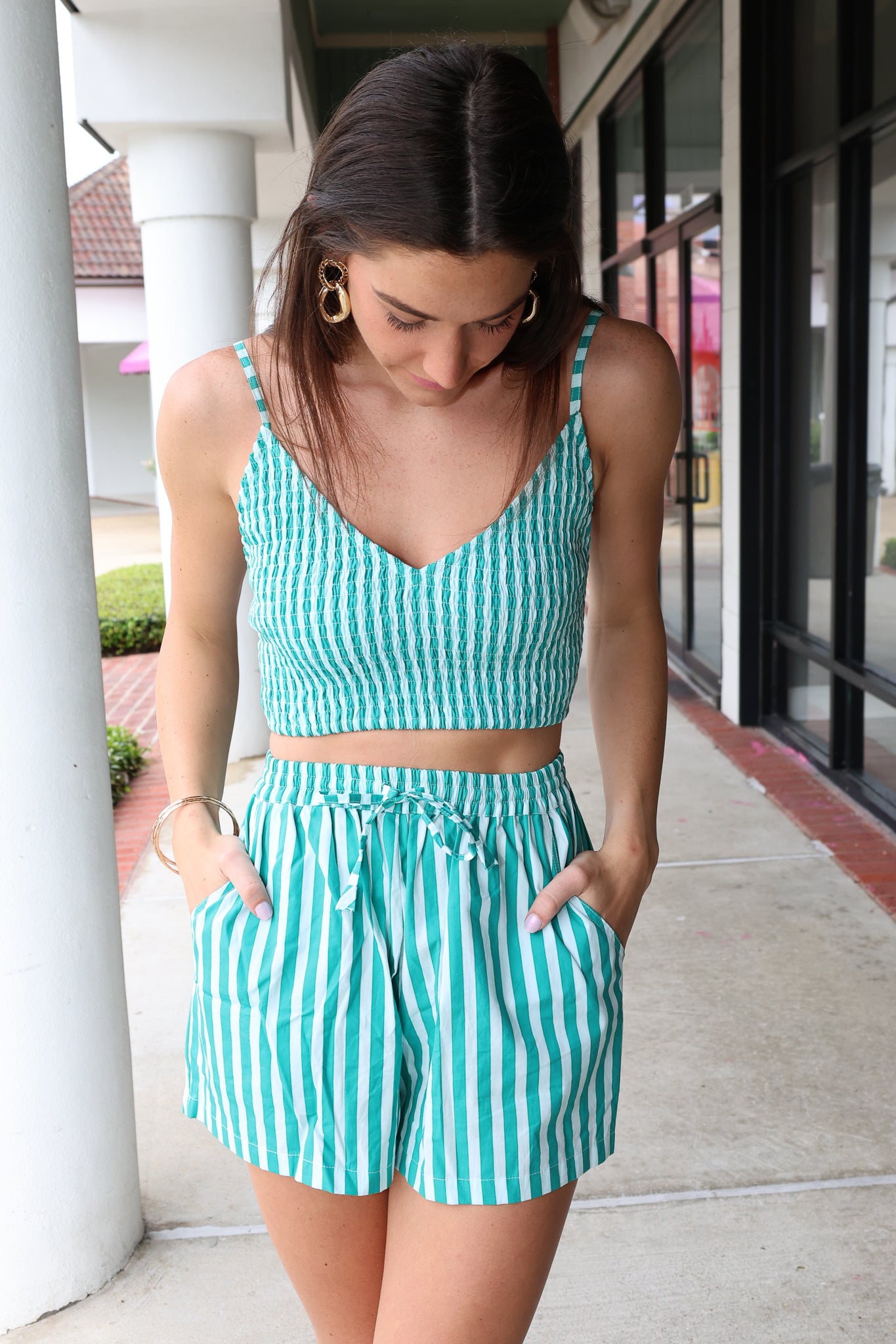 Unleash your inner fashionista with the Lila Poplin Bralette. This striped and smocked sleeveless top features adjustable straps for a customizable fit. Perfect for adding a touch of fun to any outfit! Pair with the Donovan Shorts to complete this look.