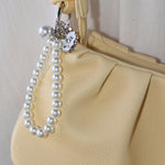 Carry elegance in every shade with this butter yellow handbag, designed for versatility and style. The compact silhouette fits perfectly in your hand or transitions seamlessly to your shoulder via the removable chain strap. A delicate pearl charm adds a touch of sophistication, while the structured handle ensures comfortable everyday wear. Perfect for brunch, errands, or evening outings—this piece effortlessly complements any wardrobe. Approx. 9"X4"